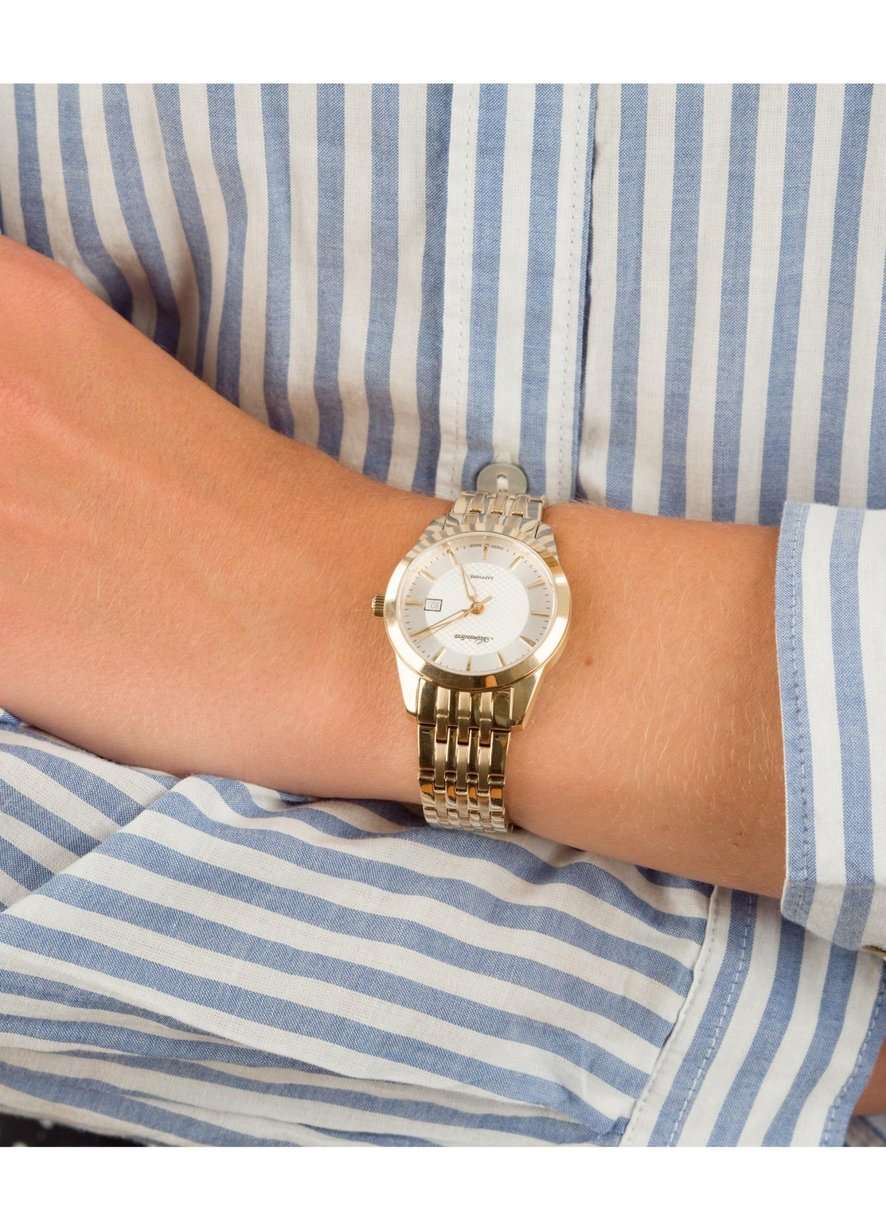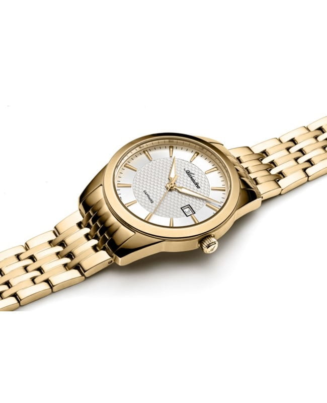 Часы Adriatica A3188.1113Q представляют собой сочетание швейцарской точности и изысканного дизайна. Эти часы из коллекции Premier созданы для тех, кто ценит утонченность и надежность. Корпус и безельБезельВнешний ободок, закрепляющий стекло. В спортивных часах так называется поворотное кольцо с делениями на циферблате, выполняет роль таймера – замеряет отрезки времени на шкале. Неподвижный безель – элемент декора. Однонаправленно вращающийся безель на дайверских часах позволяет фиксировать моменты погружения и выныривания на поверхность. этих часов выполнены из нержавеющей стали с PVDPVDУльтратонкое покрытие наносится в технике вакуумного напыления, сочетает в себе нитрид титана особой прочности со слоем золота или оксида хрома. Несёт в себе декоративную или защитную функцию. покрытием, что придает изделию элегантность и долговечность. Сердцем часов является кварцевый механизм ETA F04, обеспечивающий высокую точность хода. Сапфировое стеклоСапфировое стеклоПрочный и надёжный материал из кристалла сапфира синтетического происхождения, характеризующийся особой твёрдостью и устойчивостью к царапинам и повреждениям. защищает изящный белый циферблат, а люминесцентное покрытиеЛюминесцентное покрытиеПозволяет считывать показания времени в темноте. Производители наносят на стрелки, часовые индексы, безель или поверхность циферблата светонакопительный состав, дающий холодное свечение. на стрелках облегчает чтение времени в условиях низкой освещенности. Часы обладают водозащитой до 5 ATM, что делает их устойчивыми к случайным воздействиям воды. Стальной браслет, выполненный из нержавеющей стали с PVDPVDУльтратонкое покрытие наносится в технике вакуумного напыления, сочетает в себе нитрид титана особой прочности со слоем золота или оксида хрома. Несёт в себе декоративную или защитную функцию. покрытием, отличается комфортом и надежностью, а раскладная застёжкаРаскладная застёжкаТакой тип застёжки используется только на браслетах из металла. Она никогда не раскрывается полностью, происходит разделение на 2 и более частей. Раскладывающая застёжка снизит вероятность потери часов к минимуму. обеспечивает удобство ношения. Часы оснащены функцией отображения даты в окошке в положении 3 часа, что добавляет практичности в повседневной жизни.