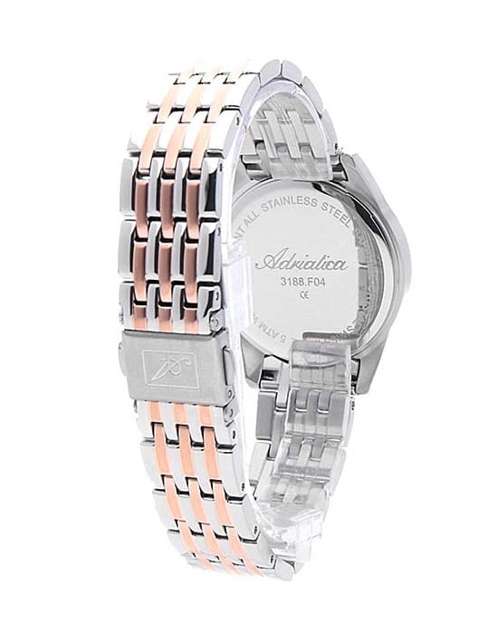 Часы Adriatica A3188.R117Q представляют собой сочетание швейцарской точности и изысканного дизайна. Эти часы из коллекции Premier созданы для тех, кто ценит утонченность и надежность. Корпус этих часов выполнен из нержавеющей стали, а безельБезельВнешний ободок, закрепляющий стекло. В спортивных часах так называется поворотное кольцо с делениями на циферблате, выполняет роль таймера – замеряет отрезки времени на шкале. Неподвижный безель – элемент декора. Однонаправленно вращающийся безель на дайверских часах позволяет фиксировать моменты погружения и выныривания на поверхность. с золотистым PVDPVDУльтратонкое покрытие наносится в технике вакуумного напыления, сочетает в себе нитрид титана особой прочности со слоем золота или оксида хрома. Несёт в себе декоративную или защитную функцию. покрытием, что придает изделию элегантность и долговечность. Сердцем часов является кварцевый механизм ETA F04, обеспечивающий высокую точность хода. Сапфировое стеклоСапфировое стеклоПрочный и надёжный материал из кристалла сапфира синтетического происхождения, характеризующийся особой твёрдостью и устойчивостью к царапинам и повреждениям. защищает изящный серебристый циферблат, а люминесцентное покрытиеЛюминесцентное покрытиеПозволяет считывать показания времени в темноте. Производители наносят на стрелки, часовые индексы, безель или поверхность циферблата светонакопительный состав, дающий холодное свечение. на стрелках облегчает чтение времени в условиях низкой освещенности. Часы обладают водозащитой до 5 ATM, что делает их устойчивыми к случайным воздействиям воды. Стальной браслет, выполненный из нержавеющей стали с частичным PVDPVDУльтратонкое покрытие наносится в технике вакуумного напыления, сочетает в себе нитрид титана особой прочности со слоем золота или оксида хрома. Несёт в себе декоративную или защитную функцию. покрытием, отличается комфортом и надежностью, а раскладная застёжкаРаскладная застёжкаТакой тип застёжки используется только на браслетах из металла. Она никогда не раскрывается полностью, происходит разделение на 2 и более частей. Раскладывающая застёжка снизит вероятность потери часов к минимуму. обеспечивает удобство ношения. Часы оснащены функцией отображения даты в окошке в положении 3 часа, что добавляет практичности в повседневной жизни.