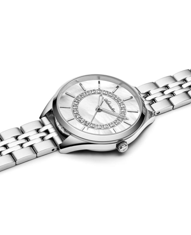 Женские часы с минеральным стекломМинеральное стеклоМинеральное стекло представляет собой искусственно выращенный минерал кварца. Такое стекло отличается особой устойчивостью к повреждениям и царапинам. Уступает по некоторым качествам сапфировому стеклу. Adriatica A3817.511FQ, кварцевый механизм Ronda 783, работающим от батарейки с высокой точностью. Класс водозащиты: 30 метров, позволит защитить корпус от случайных брызг или капель дождя. Корпус часов изготовлен из стали. Стальной браслет на раскладной застёжкеРаскладная застёжкаТакой тип застёжки используется только на браслетах из металла. Она никогда не раскрывается полностью, происходит разделение на 2 и более частей. Раскладывающая застёжка снизит вероятность потери часов к минимуму..