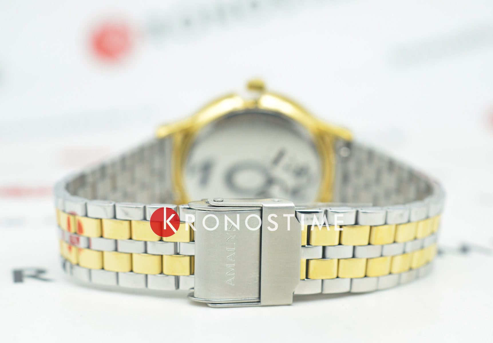 Amalys AMW-205 — женская модель с элегантным классическим стилем и утончёнными деталями. Круглый корпус изготовлен из нержавеющей стали с PVDPVDУльтратонкое покрытие наносится в технике вакуумного напыления, сочетает в себе нитрид титана особой прочности со слоем золота или оксида хрома. Несёт в себе декоративную или защитную функцию.-покрытием золотистого оттенка и гармонирует с браслетом в том же исполнении, состоящим из звеньев и обеспечивающим комфортное прилегание к запястью. Защитную функцию выполняет сапфировое стеклоСапфировое стеклоПрочный и надёжный материал из кристалла сапфира синтетического происхождения, характеризующийся особой твёрдостью и устойчивостью к царапинам и повреждениям., которое отличается стойкостью к царапинам и сохраняет высокую прозрачность. В основе лежит кварцевый механизм, гарантирующий точность хода и простоту эксплуатации. Циферблат украшен изящными римскими цифрами и метками, дополнен утончённым индикатором фаз Луны, который придаёт часам особый шарм и делает их акцентной деталью образа. Водозащита 3 ATM защищает от случайных брызг и дождя. Модель сочетает функциональность и изысканность, подойдёт как для повседневного стиля, так и для особых случаев.