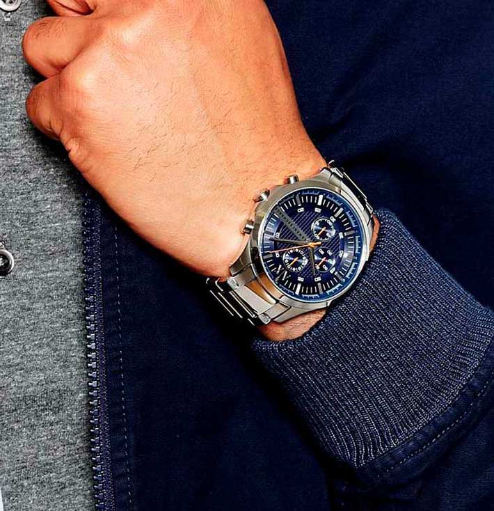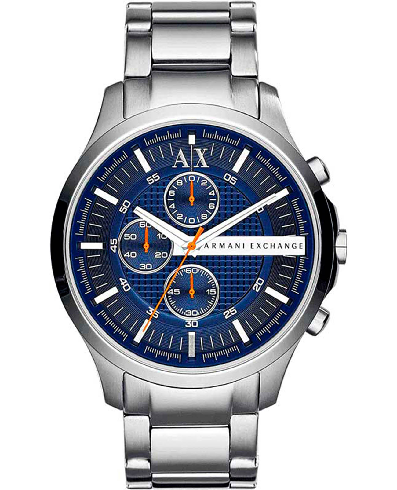 Мужские кварцевые часы Armani Exchange — это стильный аксессуар, сочетающий в себе элегантность и функциональность. Модель выполнена из нержавеющей стали с диаметром корпуса 46 мм и толщиной 11 мм, что делает её прочной и устойчивой к царапинам. Циферблат синего цвета дополнен арабскими цифрами и функцией хронографаХронографФункция позволяет измерять отрезки времени с особой точностью: часы, минуты, секунды. Верным признаком хронографа является наличие на циферблате 3 дополнительных окошек-счётчиков., что обеспечивает точный отсчёт времени. Защиту механизма обеспечивает минеральное стеклоМинеральное стеклоМинеральное стекло представляет собой искусственно выращенный минерал кварца. Такое стекло отличается особой устойчивостью к повреждениям и царапинам. Уступает по некоторым качествам сапфировому стеклу., устойчивое к повреждениям. Браслет из стали серебристого цвета шириной 22 мм оснащён Раскладная застёжкаРаскладная застёжкаТакой тип застёжки используется только на браслетах из металла. Она никогда не раскрывается полностью, происходит разделение на 2 и более частей. Раскладывающая застёжка снизит вероятность потери часов к минимуму., обеспечивающей комфорт и надёжную фиксацию на запястье. Часы водонепроницаемы до 50 метров , что позволяет использовать их при плавании на мелководье. Гарантия 2 года подтверждает качество и долговечность изделия. Эти часы станут универсальным аксессуаром для тех, кто ценит сочетание стиля, функциональности и надёжности — идеальный выбор для повседневной носки и активного образа жизни.