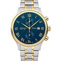 Мужские швейцарские часы-хронографХронографФункция позволяет измерять отрезки времени с особой точностью: часы, минуты, секунды. Верным признаком хронографа является наличие на циферблате 3 дополнительных окошек-счётчиков. с секундомеромСекундомерСекундоме́р — прибор, способный измерять интервалы времени с точностью до долей секунды. Atlantic Seabase 64457.43.58G, кварцевый механизм с высокой точностью. Cапфировое стеклоСапфировое стеклоПрочный и надёжный материал из кристалла сапфира синтетического происхождения, характеризующийся особой твёрдостью и устойчивостью к царапинам и повреждениям. устойчивое к появлению царапин и обладающее высокой прозрачностью. Корпус и браслет часов изготовлены из нержавеющей стали с частичным PVDPVDУльтратонкое покрытие наносится в технике вакуумного напыления, сочетает в себе нитрид титана особой прочности со слоем золота или оксида хрома. Несёт в себе декоративную или защитную функцию. покрытием. На циферблате расположены  римские цифры, два дополнительных индикатора, окошко даты в положении 3 часов. Класс водозащиты: 50 метров, позволит защитить корпус от случайных брызг или капель дождя. Стальной браслет на раскладной застёжкеРаскладная застёжкаТакой тип застёжки используется только на браслетах из металла. Она никогда не раскрывается полностью, происходит разделение на 2 и более частей. Раскладывающая застёжка снизит вероятность потери часов к минимуму..
