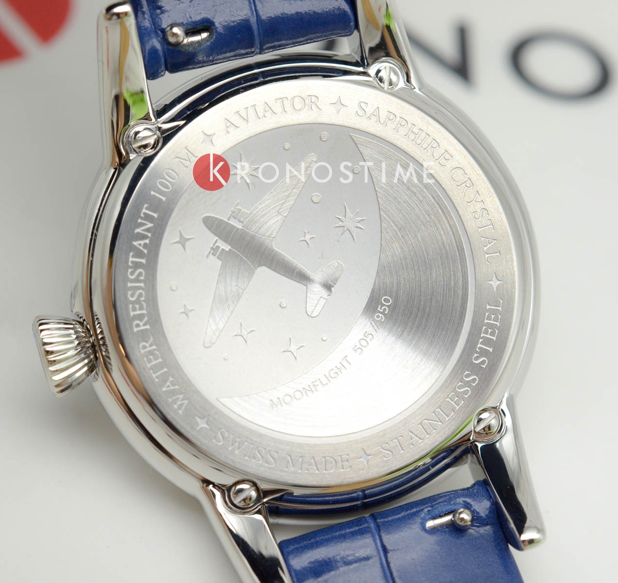 Aviator V.1.33.0.255.4 “Douglas Moonflight” — элегантный дамский швейцарский Moonphase с утончённой авиационной эстетикой. Корпус 36 мм из нержавеющей стали с полированной отделкой обладает компактными пропорциями и удобным литым профилем.