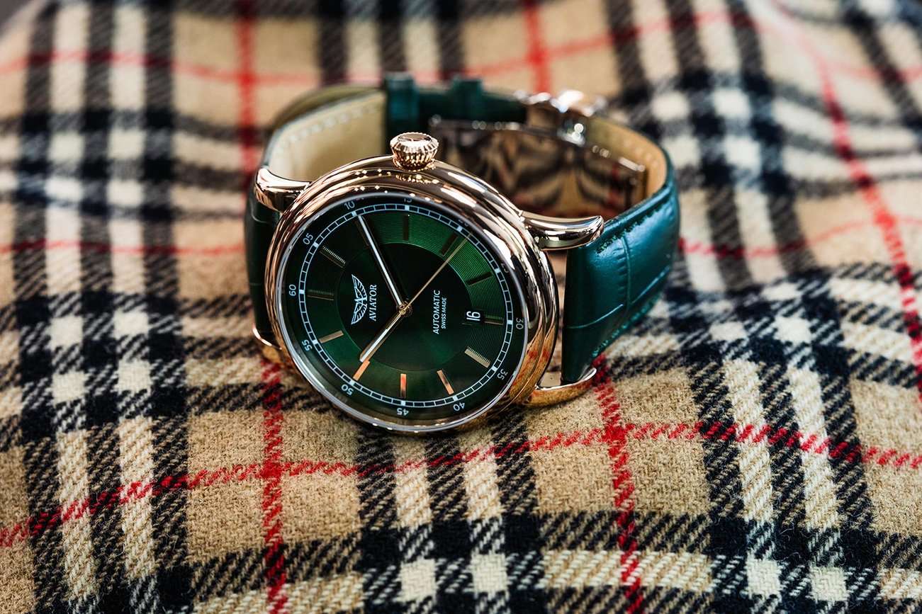 Aviator Douglas DC-3 V.3.32.2.237.4 — швейцарские часы в классике авиадизайна, сочетающие безупречную читаемость и высокую надёжность. Лимитированная серия. Корпус диаметром 45 мм выполнен из нержавеющей стали 316L с PVD-покрытиемPVDУльтратонкое покрытие наносится в технике вакуумного напыления, сочетает в себе нитрид титана особой прочности со слоем золота или оксида хрома. Несёт в себе декоративную или защитную функцию. цвета розового золота. Накладные метки выполнены в виде штрихов. Окошко даты находится в положении 6 часов. Часовые метки и стрелки покрыты люминесцентным покрытиемЛюминесцентное покрытиеПозволяет считывать показания времени в темноте. Производители наносят на стрелки, часовые индексы, безель или поверхность циферблата светонакопительный состав, дающий холодное свечение. Superluminova, позволяющим легко определять время даже в тёмное время суток. Поверхность защищена прочным сапфировым стекломСапфировое стеклоПрочный и надёжный материал из кристалла сапфира синтетического происхождения, характеризующийся особой твёрдостью и устойчивостью к царапинам и повреждениям. с антибликовым покрытием, устойчивым к царапинам. Сердце модели — швейцарский механизм Sellita SW 200, известный своей точностью и долговечностью. Калибр управляется регулятором Etachron , который обеспечивает высокую точность хода как на земле, так и над землей. Водозащита 100 метров, позволит плавать, нырять и заниматься другими водными видами спорта. Завинчивающаяся головка и задняя крышка обеспечивают уверенную ударопрочностьУдаропрочный корпусМеханизм заключён в корпус, выполненный из современных материалов, устойчивых к ударам, механическим повреждениям и падению с высоты: инновационный пластик, карбон, нержавеющая сталь, титан. и надёжную защиту от влаги и пыли. В механизме 26 камней, запас хода 38 часов. Модель дополнена кожаным ремешком с выразительной текстурой и классическим стилем, закреплённым с помощью застёжке-бабочке с кнопкамиЗастёжка "бабочка"Такой вид застёжки дополняется предохранителями, помогающими избежать случайного раскрытия браслета. Обладают изящным исполнением. — для максимального комфорта и лёгкости в повседневном использовании. Циферблат выполнен по технологии sun-ray (солнечные лучи). Коллекция Douglas была разработана в честь известного американского пассажирского самолета Douglas DC-3. Aviator — это образец лётной точности, инженерной чёткости и сдержанной роскоши, идеально подходящий для тех, кто ценит функциональность и уверенность в каждом элементе.