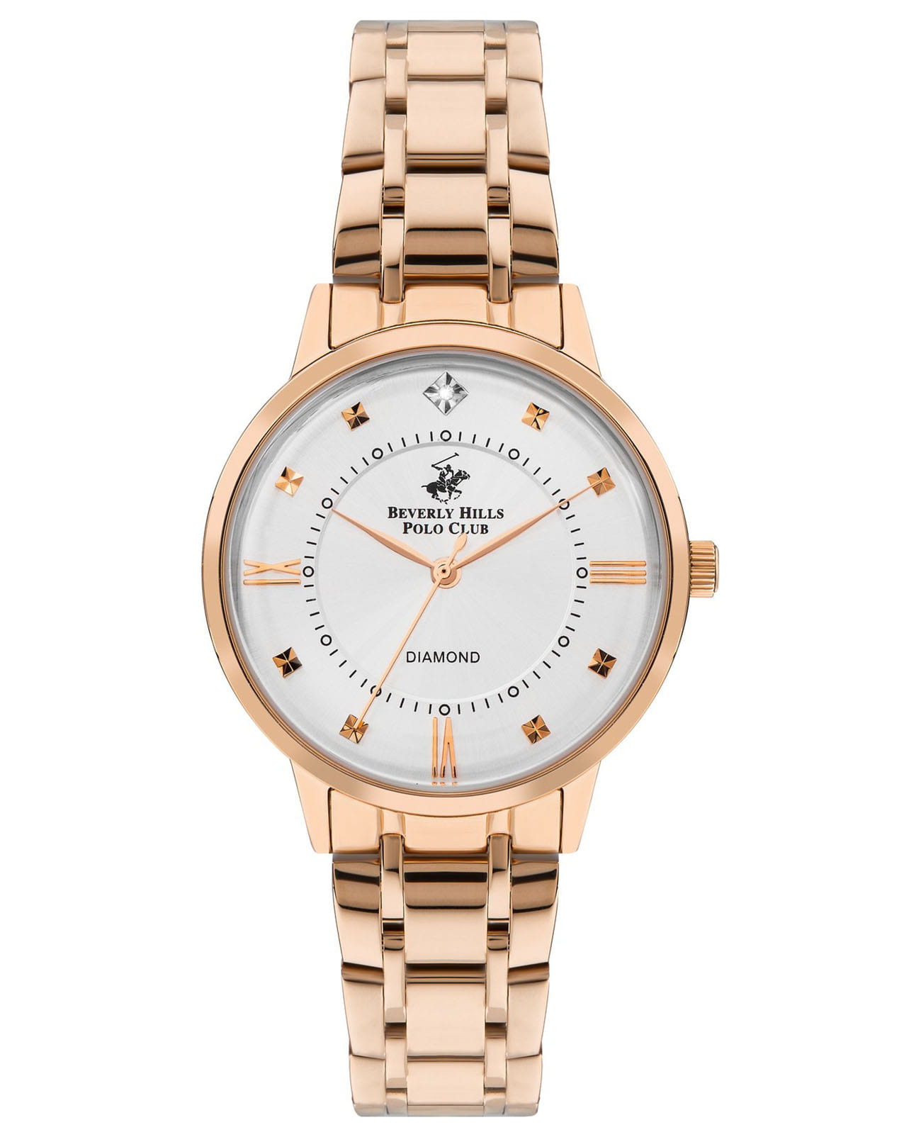 Американские женские часы с минеральным стекломМинеральное стеклоМинеральное стекло представляет собой искусственно выращенный минерал кварца. Такое стекло отличается особой устойчивостью к повреждениям и царапинам. Уступает по некоторым качествам сапфировому стеклу. Beverly Hills Polo Club BP3388C.430, кварцевый механизм с высокой точностью. Корпус и браслет часов изготовлены из нержавеющей стали с IP-покрытиемIP-покрытиеМетод ионного напыления. Демонстрирует повышенную устойчивость к истиранию, окислению и химическим веществам. Под воздействием высокого давления и температуры около 1500°C молекулы металла надёжно соединяются с частицами корпуса часов.. Циферблат украшен бриллиантом. . Класс водозащиты: 50 метров, позволит защитить корпус от случайных брызг или капель дождя. Стальной браслет на раскладной застёжкеРаскладная застёжкаТакой тип застёжки используется только на браслетах из металла. Она никогда не раскрывается полностью, происходит разделение на 2 и более частей. Раскладывающая застёжка снизит вероятность потери часов к минимуму..