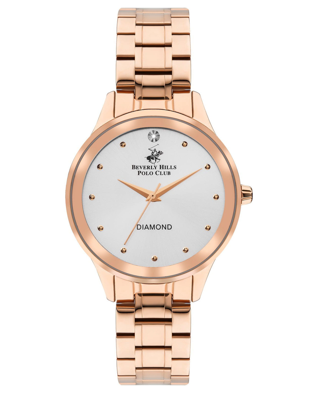 Американские женские часы с минеральным стекломМинеральное стеклоМинеральное стекло представляет собой искусственно выращенный минерал кварца. Такое стекло отличается особой устойчивостью к повреждениям и царапинам. Уступает по некоторым качествам сапфировому стеклу. Beverly Hills Polo Club BP3505X.430, кварцевый механизм с высокой точностью. Корпус и браслет часов изготовлены из нержавеющей стали с IP-покрытиемIP-покрытиеМетод ионного напыления. Демонстрирует повышенную устойчивость к истиранию, окислению и химическим веществам. Под воздействием высокого давления и температуры около 1500°C молекулы металла надёжно соединяются с частицами корпуса часов.. Циферблат инкрустирован бриллиантом. Класс водозащиты: 50 метров, позволит защитить корпус от случайных брызг или капель дождя. Стальной браслет на раскладной застёжкеРаскладная застёжкаТакой тип застёжки используется только на браслетах из металла. Она никогда не раскрывается полностью, происходит разделение на 2 и более частей. Раскладывающая застёжка снизит вероятность потери часов к минимуму..