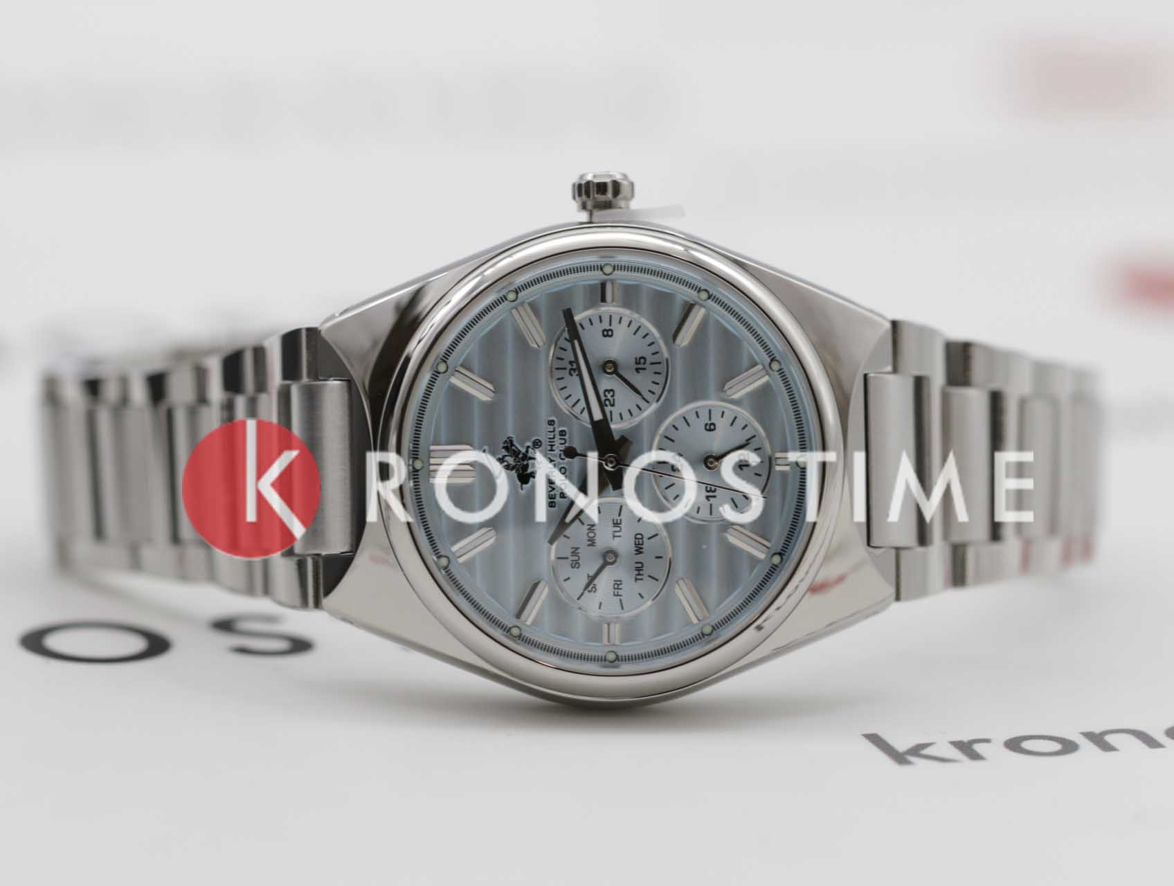 Beverly Hills Polo Club BP3746C.300 – элегантные женские часы, сочетающие стильный дизайн и высокую функциональность. Корпус диаметром 34 мм выполнен из суперметалла, обеспечивающего прочность и долговечность. Циферблат украшен, и защищён минеральным стекломМинеральное стеклоМинеральное стекло представляет собой искусственно выращенный минерал кварца. Такое стекло отличается особой устойчивостью к повреждениям и царапинам. Уступает по некоторым качествам сапфировому стеклу., устойчивым к царапинам. Часы оснащены точным кварцевым механизмом, гарантирующим надёжное отображение времени. Браслет из нержавеющей стали на застёжке-бабочке с кнопкамиЗастёжка "бабочка"Такой вид застёжки дополняется предохранителями, помогающими избежать случайного раскрытия браслета. Обладают изящным исполнением. , обеспечивающей комфортное ношение и надёжную фиксацию на запястье. Водозащита до 50 метров (5 ATM) позволяет использовать часы в повседневной жизни, включая кратковременное погружение в воду.
