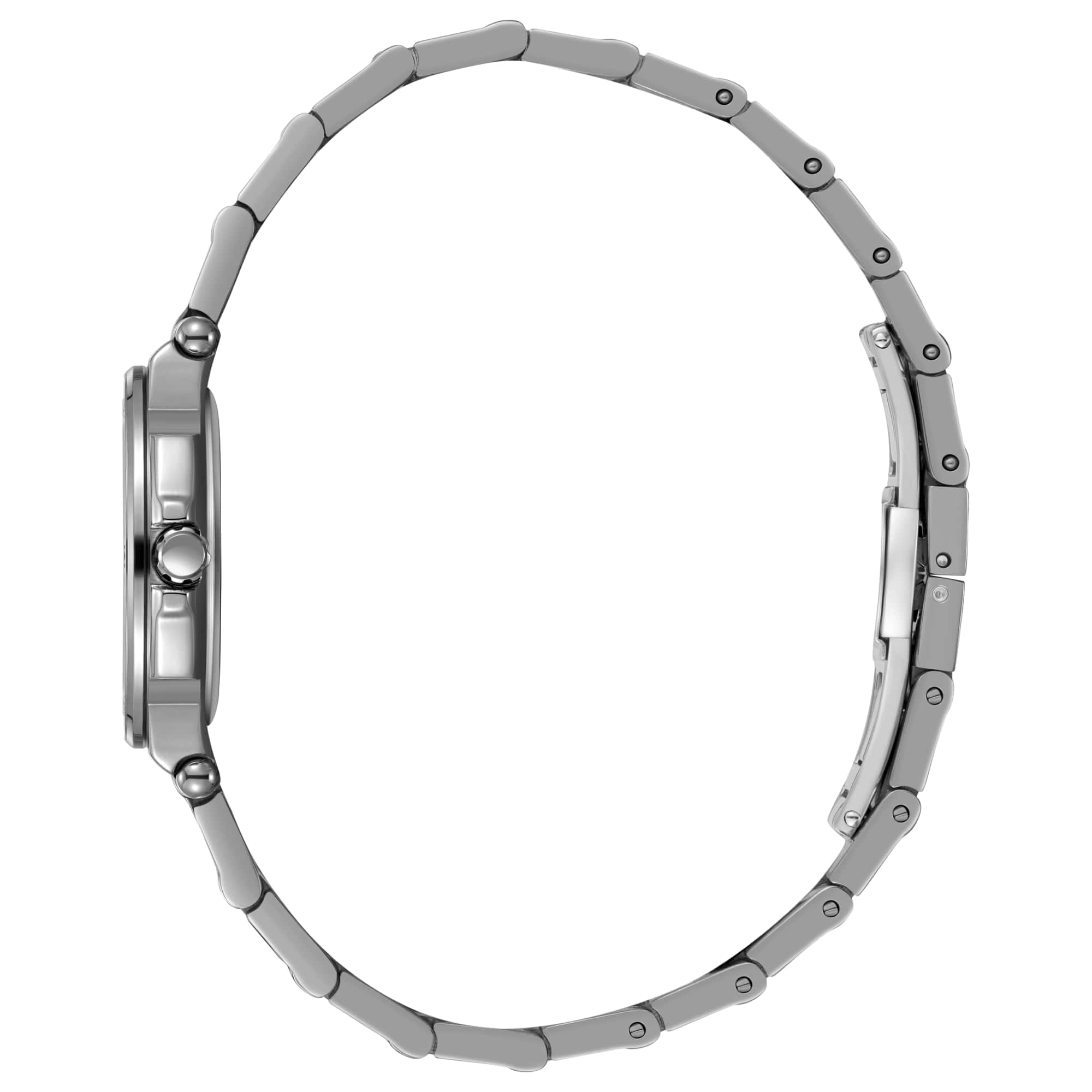 Стальной браслет на застёжке-бабочке с кнопкамиЗастёжка "бабочка"Такой вид застёжки дополняется предохранителями, помогающими избежать случайного раскрытия браслета. Обладают изящным исполнением. . Часы обладают водозащитой до 30 метров, позволит защитить корпус от случайных брызг или капель дождя. Синтетический бриллиант придает часам неповторимый шарм и изысканность.
