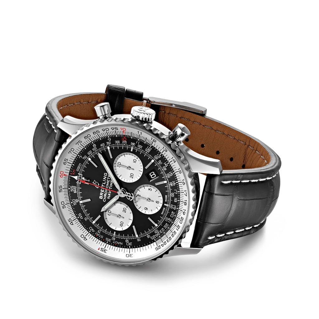 Классический представитель коллекции − модель Navitimer Chronograph 46 AB0127211B1P1 − отличается внушительным размером. Ее оригинальный 46-миллиметровый корпус с круглой логарифмической линейкой и превосходной считываемостью показаний на циферблате будет заметен на любом запястье. Прозрачная задняя крышка корпуса из сапфирового стекла позволяет наблюдать за работой мануфактурного калибра Manufacture Breitling Caliber 01, высококлассного сертифицированного хронографа с автоподзаводом.