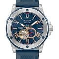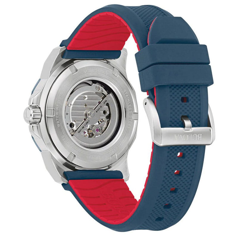 Мужские механические часы с автоподзаводом Bulova Marine Star 98A282 – отражающий идеальное сочетание современного дизайна, надёжности и функциональности. Элегантный облик станет превосходным завершением образа, наделив его индивидуальным характером. Корпус из нержавеющей стали с частичным IP-покрытиемIP-покрытиеМетод ионного напыления. Демонстрирует повышенную устойчивость к истиранию, окислению и химическим веществам. Под воздействием высокого давления и температуры около 1500°C молекулы металла надёжно соединяются с частицами корпуса часов., диаметром 45 мм идеально сбалансирован и элегантен. Защиту циферблата обеспечивает прочное минеральное стеклоМинеральное стеклоМинеральное стекло представляет собой искусственно выращенный минерал кварца. Такое стекло отличается особой устойчивостью к повреждениям и царапинам. Уступает по некоторым качествам сапфировому стеклу. гарантирующее четкость показаний. Центральные часовая и минутная стрелки, секундная стрелка вынесена на малый циферблат. Силиконовый ремешок со стандартной застежкой обеспечивает комфортное ношение.  Водозащита 200 метров позволит плавать, нырять и заниматься другими водными видами спорта. Стрелки с люминесцентным покрытиемЛюминесцентное покрытиеПозволяет считывать показания времени в темноте. Производители наносят на стрелки, часовые индексы, безель или поверхность циферблата светонакопительный состав, дающий холодное свечение. позволяющие легко определять время даже в темноте. Эта модель – отличный выбор для тех, кто ищет сочетание стиля, качества и функциональности. Часы станут не только полезным аксессуаром, но и выразительным элементом вашего имиджа.