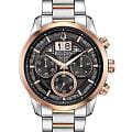 Мужские кварцевые часы-хронографХронографФункция позволяет измерять отрезки времени с особой точностью: часы, минуты, секунды. Верным признаком хронографа является наличие на циферблате 3 дополнительных окошек-счётчиков. Bulova Sutton 98B335 – отражающий идеальное сочетание современного дизайна, надёжности и функциональности. Элегантный облик станет превосходным завершением образа, наделив его индивидуальным характером. Корпус из нержавеющей стали серебристого цвета, диаметром 44 мм идеально сбалансирован и элегантен. Минеральное стеклоМинеральное стеклоМинеральное стекло представляет собой искусственно выращенный минерал кварца. Такое стекло отличается особой устойчивостью к повреждениям и царапинам. Уступает по некоторым качествам сапфировому стеклу. защищает циферблат от царапин и устойчивое к мелким механическим повреждениям. Малые циферблат на 60 секунд, 60 минут, 10 часов. Большая дата в позиции 12 часов. Стальной браслет с частичным IP-покрытиемIP-покрытиеМетод ионного напыления. Демонстрирует повышенную устойчивость к истиранию, окислению и химическим веществам. Под воздействием высокого давления и температуры около 1500°C молекулы металла надёжно соединяются с частицами корпуса часов. на застёжке-бабочке с кнопкамиЗастёжка "бабочка"Такой вид застёжки дополняется предохранителями, помогающими избежать случайного раскрытия браслета. Обладают изящным исполнением. обеспечивает комфортное ношение. Неподвижный безельБезельВнешний ободок, закрепляющий стекло. В спортивных часах так называется поворотное кольцо с делениями на циферблате, выполняет роль таймера – замеряет отрезки времени на шкале. Неподвижный безель – элемент декора. Однонаправленно вращающийся безель на дайверских часах позволяет фиксировать моменты погружения и выныривания на поверхность. с IP-покрытиемIP-покрытиеМетод ионного напыления. Демонстрирует повышенную устойчивость к истиранию, окислению и химическим веществам. Под воздействием высокого давления и температуры около 1500°C молекулы металла надёжно соединяются с частицами корпуса часов.. Водозащита 30 метров позволит защитить корпус от случайных брызг или капель дождя. Стрелки с люминесцентным покрытиемЛюминесцентное покрытиеПозволяет считывать показания времени в темноте. Производители наносят на стрелки, часовые индексы, безель или поверхность циферблата светонакопительный состав, дающий холодное свечение. позволяющие легко определять время даже в темноте. Эта модель – отличный выбор для тех, кто ищет сочетание стиля, качества и функциональности. Часы станут не только полезным аксессуаром, но и выразительным элементом вашего имиджа.