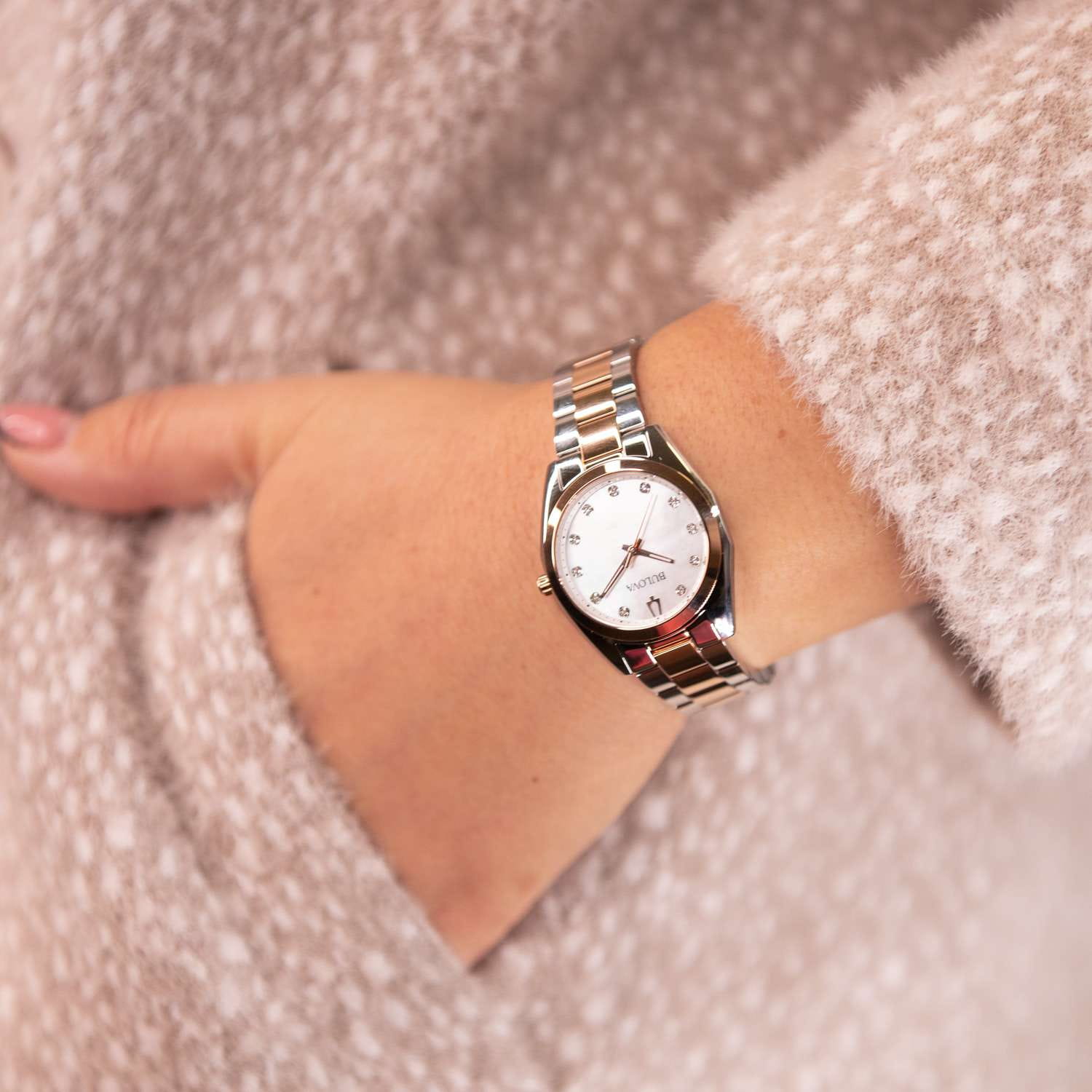 Женские кварцевые часы Bulova Surveyor 98P207 – отражающий идеальное сочетание современного дизайна, надёжности и функциональности. Элегантный облик станет превосходным завершением образа, наделив его индивидуальным характером. Корпус из нержавеющей стали серебристого цвета, диаметром 31 мм идеально сбалансирован и элегантен. Минеральное стеклоМинеральное стеклоМинеральное стекло представляет собой искусственно выращенный минерал кварца. Такое стекло отличается особой устойчивостью к повреждениям и царапинам. Уступает по некоторым качествам сапфировому стеклу. защищает циферблат от царапин и устойчивое к мелким механическим повреждениям. Неподвижный безельБезельВнешний ободок, закрепляющий стекло. В спортивных часах так называется поворотное кольцо с делениями на циферблате, выполняет роль таймера – замеряет отрезки времени на шкале. Неподвижный безель – элемент декора. Однонаправленно вращающийся безель на дайверских часах позволяет фиксировать моменты погружения и выныривания на поверхность. с IP-покрытиемIP-покрытиеМетод ионного напыления. Демонстрирует повышенную устойчивость к истиранию, окислению и химическим веществам. Под воздействием высокого давления и температуры около 1500°C молекулы металла надёжно соединяются с частицами корпуса часов. цвета розового золота. Циферблат украшен бриллиантами. Стальной браслет с частичным IP-покрытиемIP-покрытиеМетод ионного напыления. Демонстрирует повышенную устойчивость к истиранию, окислению и химическим веществам. Под воздействием высокого давления и температуры около 1500°C молекулы металла надёжно соединяются с частицами корпуса часов. на застёжке-бабочке с кнопкамиЗастёжка "бабочка"Такой вид застёжки дополняется предохранителями, помогающими избежать случайного раскрытия браслета. Обладают изящным исполнением. обеспечивает комфортное ношение. Стрелки с люминесцентным покрытиемЛюминесцентное покрытиеПозволяет считывать показания времени в темноте. Производители наносят на стрелки, часовые индексы, безель или поверхность циферблата светонакопительный состав, дающий холодное свечение.. Водозащита 30 метров позволит защитить корпус от случайных брызг или капель дождя. Эта модель – отличный выбор для тех, кто ищет сочетание стиля, качества и функциональности. Часы станут не только полезным аксессуаром, но и выразительным элементом вашего имиджа.