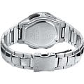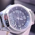 Гладкая серебристая поверхность плавно отображает падающий свет. Есть записная книжка с возможностью сохранения до 30 контактов. Время отображается в 2 форматах - в 12- и 24-часовом. Дисплей освещается светодиодной подсветкойСветодиодная подсветкаСветодиодная или LED-подсветка обеспечивает появление яркого холодного свечения за счёт LED-элементов - маленьких лампочек. Они потребляют минимальное количество энергии, чаще всего можно встретить 1 светодиод, в нижней части циферблата.. Встроена опция мирового времениМировое время Полезное часовое усложнение, отображающее время в основных городах и известных областях по всему миру, оно связано с часовыми поясами, удобно для путешественников и бизнесменов. . Водонепроницаемость в 100 WR.