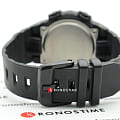 Чёрный циферблат дополнен контрастными стрелками и метками. Крупная индикация времени, арабские цифры позволили добиться оптимальной читаемости информации. Японский кварцевый механизм отличается высокой точностью хода. Калибр заключён в противоударный корпусУдаропрочный корпусМеханизм заключён в корпус, выполненный из современных материалов, устойчивых к ударам, механическим повреждениям и падению с высоты: инновационный пластик, карбон, нержавеющая сталь, титан. из надёжного пластика, устойчивого к повреждениям и падению. Батарейка SR726W рассчитана на 2-летний срок. Закаленное минеральное стекло. Светодиодная подсветкаСветодиодная подсветкаСветодиодная или LED-подсветка обеспечивает появление яркого холодного свечения за счёт LED-элементов - маленьких лампочек. Они потребляют минимальное количество энергии, чаще всего можно встретить 1 светодиод, в нижней части циферблата.. Включение и отключение звука кнопок. Водонепроницаемость 10 бар. Перемещение стрелок. Ежечасный сигнал. Будильник, мировое времяМировое время Полезное часовое усложнение, отображающее время в основных городах и известных областях по всему миру, оно связано с часовыми поясами, удобно для путешественников и бизнесменов. – 31 часовой пояс, таймер, UTCUTCВсемирное кординационное время, не имеющее привязки к географическому положению Гринвича, основывается на атомном отсчёте времени. Регулировка времени осуществляется более точно, чем устаревшее GMT.