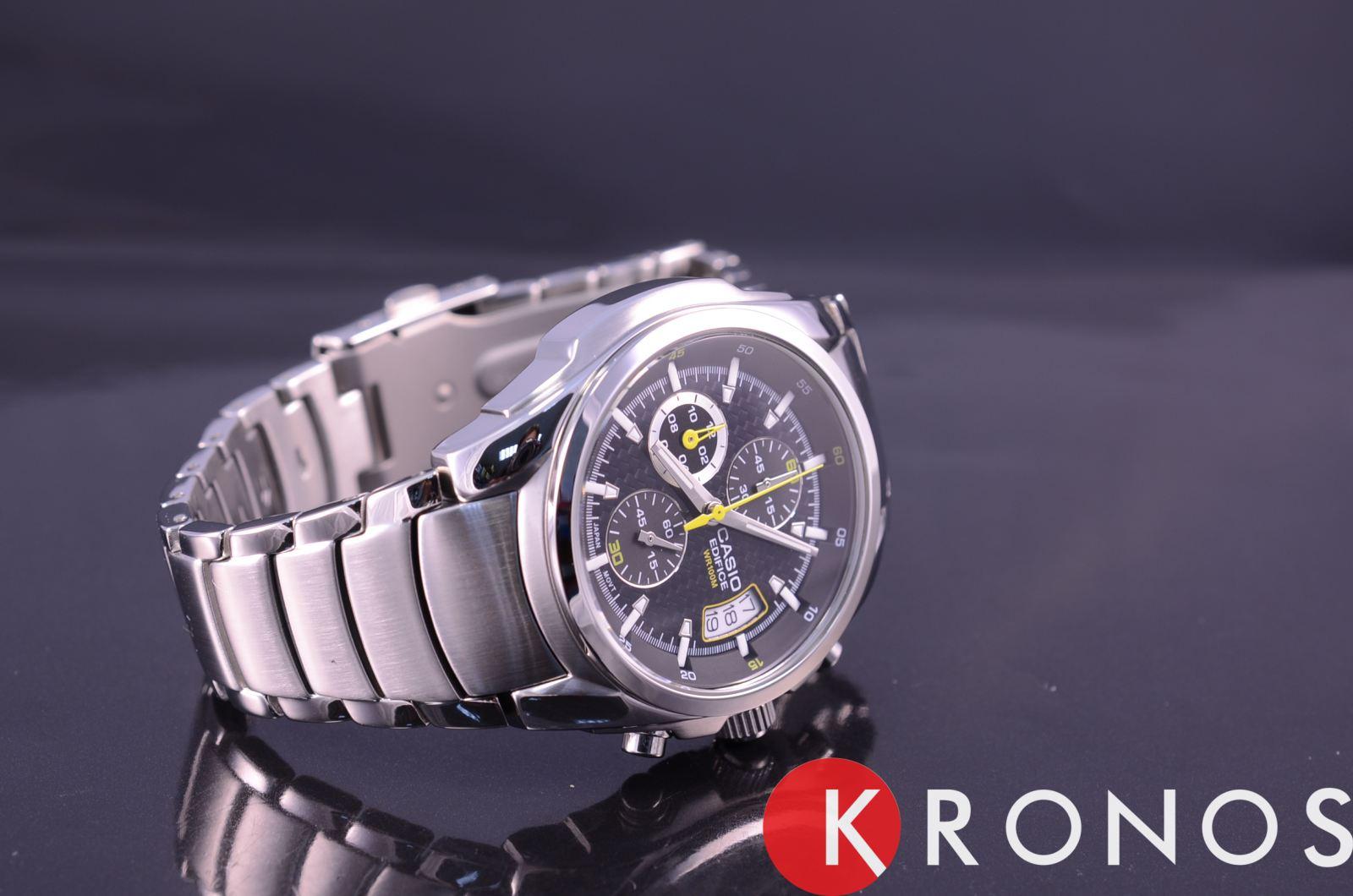 Мужские классические наручные часы Casio Edifice надежные и практичные. Кварцевый японский механизм Miyota. Точность хода не хуже -10 +15 сек./в месяц. Часы оснащены функцией хронографа. Циферблат черного цвета с контрастными индексами. Стрелки и индексы с светонакопительным нанесением. Корпус и браслет выполнены из высококачественной стали с антикоррозийными свойствами. Минеральное стекло устойчиво к появлению царапин. Водонепроницаемость 100М. В часах можно плавать. Степень водонепроницаемости не является величиной, эквивалентной функциональной рабочей глубине.