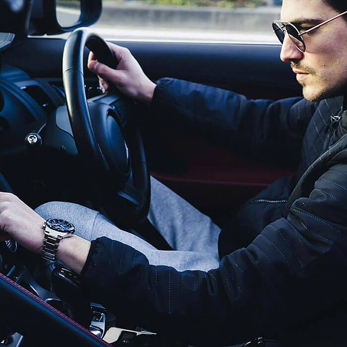 Дерзкий автомобильный дизайн, обтекаемые формы, строгие линии никого не оставят равнодушным. Эксклюзивной деталью стал циферблат с шахматным узором, поверхность которого выполнена из карбона. Модель способна получать энергию от солнечного света, она основана на технологии . Следить за состоянием заряда аккумулятора можно благодаря наличию специального индикатора. Противоударный корпусУдаропрочный корпусМеханизм заключён в корпус, выполненный из современных материалов, устойчивых к ударам, механическим повреждениям и падению с высоты: инновационный пластик, карбон, нержавеющая сталь, титан. и браслет сделаны из стали 316L, долговечный материал устойчив к коррозии. Точность хода кварцевого японского механизма составляет +/- 20 секунд в месяц. БезельБезельВнешний ободок, закрепляющий стекло. В спортивных часах так называется поворотное кольцо с делениями на циферблате, выполняет роль таймера – замеряет отрезки времени на шкале. Неподвижный безель – элемент декора. Однонаправленно вращающийся безель на дайверских часах позволяет фиксировать моменты погружения и выныривания на поверхность. с синим IP-покрытиемIP-покрытиеМетод ионного напыления. Демонстрирует повышенную устойчивость к истиранию, окислению и химическим веществам. Под воздействием высокого давления и температуры около 1500°C молекулы металла надёжно соединяются с частицами корпуса часов.. Сапфировое стекло. Закручивающаяся задняя крышка. Подсветка NeobriteПодсветка NeobriteИспользование светонакопительных составов на основе сульфида цинка или алюмината стронция, яркий свет можно наблюдать на протяжении 6-10 часов после «зарядки» часов около источника света.. Водонепроницаемость 10 бар. Секундомер, календарь. Габариты: 50 x 47,5 x 12,7 мм.