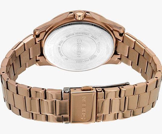 Современные женские наручные часы, выполненные в fashion стиле. Кварцевые часы с элементом питания SR920SW. Корпус и браслет часов SHE-3806PG-9A выполнены из высокопрочной стали с полным IP покрытием цвета розового золота. Водонепроницаемость часов 50 метров, минеральное стекло.  Украшены часы вставками из кристаллов Swarovski квадратной формы. Эти часы привлекут всеобщее внимание.