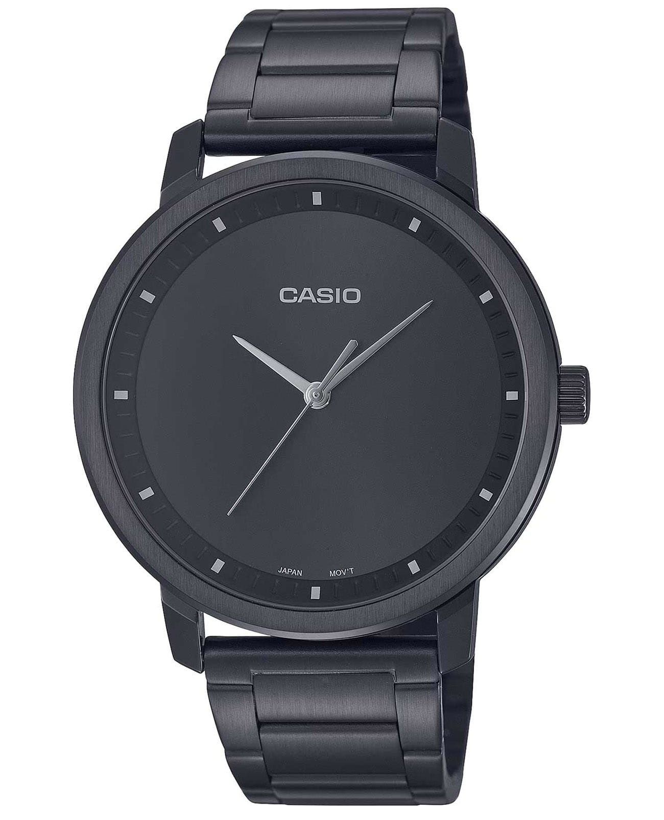 Японские мужские часы с минеральным стекломМинеральное стеклоМинеральное стекло представляет собой искусственно выращенный минерал кварца. Такое стекло отличается особой устойчивостью к повреждениям и царапинам. Уступает по некоторым качествам сапфировому стеклу. Casio Collection MTP-B115B-1E, кварцевый механизм с высокой точностью. Корпус и браслет часов изготовлены из стали IP-покрытиемIP-покрытиеМетод ионного напыления. Демонстрирует повышенную устойчивость к истиранию, окислению и химическим веществам. Под воздействием высокого давления и температуры около 1500°C молекулы металла надёжно соединяются с частицами корпуса часов.. Браслет с раскладной застёжкойРаскладная застёжкаТакой тип застёжки используется только на браслетах из металла. Она никогда не раскрывается полностью, происходит разделение на 2 и более частей. Раскладывающая застёжка снизит вероятность потери часов к минимуму..