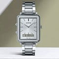 Японские мужские часы- хронографХронографФункция позволяет измерять отрезки времени с особой точностью: часы, минуты, секунды. Верным признаком хронографа является наличие на циферблате 3 дополнительных окошек-счётчиков. с минеральным стекломМинеральное стеклоМинеральное стекло представляет собой искусственно выращенный минерал кварца. Такое стекло отличается особой устойчивостью к повреждениям и царапинам. Уступает по некоторым качествам сапфировому стеклу. Casio Collection MTP-B205D-7EDF, кварцевый механизм с высокой точностью. Корпус часов изготовлен из стали. Мужские аналогово-цифровые часы. 12 и 24-часовой формат времени. СекундомерСекундомерСекундоме́р — прибор, способный измерять интервалы времени с точностью до долей секунды. с точностью показаний 1/100с и временем измерения 60мин. Второй часовой пояс. Циферблат с метками в виде штрихов выполнен по технологии Sunray (солнечные лучи). БудильникБудильникБуди́льник — часы, в заданный момент времени подающие звуковой, световой и/или в редких случаях другой сигнал., ежечасный сигнал. Батарея рассчитана на 3 года. Класс водозащиты: 50 метров, позволит защитить корпус от случайных брызг или капель дождя. Стальной браслет на раскладной застёжкеРаскладная застёжкаТакой тип застёжки используется только на браслетах из металла. Она никогда не раскрывается полностью, происходит разделение на 2 и более частей. Раскладывающая застёжка снизит вероятность потери часов к минимуму..