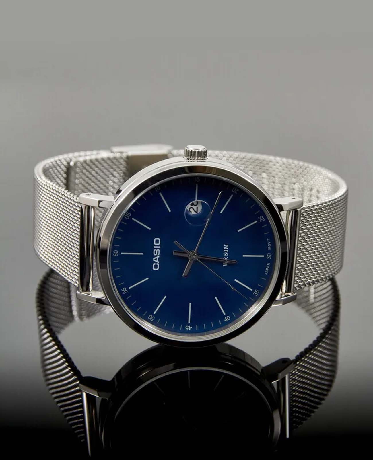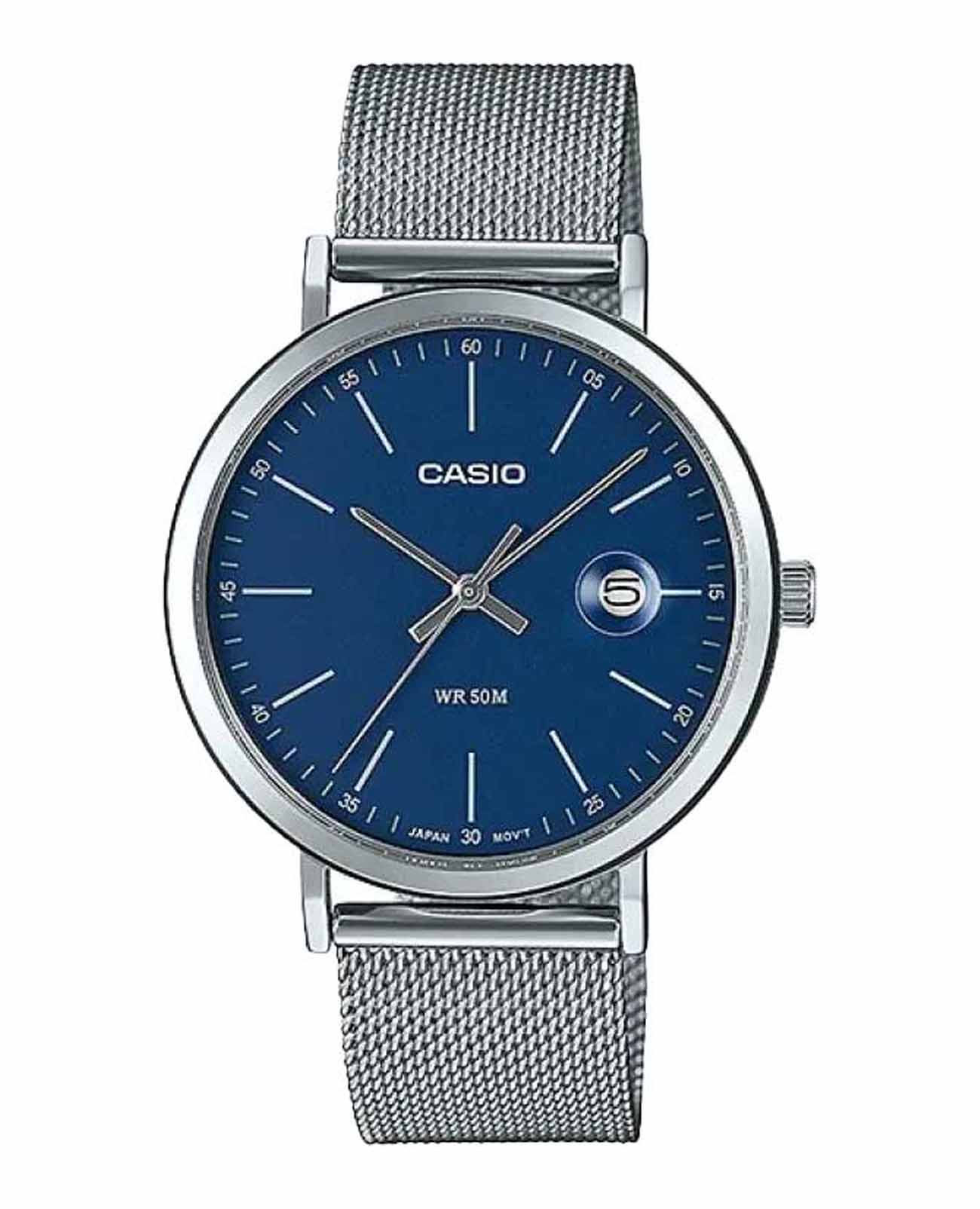 Японские мужские часы с минеральным стекломМинеральное стеклоМинеральное стекло представляет собой искусственно выращенный минерал кварца. Такое стекло отличается особой устойчивостью к повреждениям и царапинам. Уступает по некоторым качествам сапфировому стеклу. Casio Collection MTP-E175MB-2E, кварцевый механизм с высокой точностью. Корпус часов изготовлен из стали. Циферблат с метками в виде штрихов. Окошко даты находится в положении 3 часа. Рифленая заводная головка. Класс водозащиты: 50 метров, позволит защитить корпус от случайных брызг или капель дождя. Стальной браслет миланского плетения на раскладном замкеРаскладной замокДанный вариант застежки используется только на часах с металлическим браслетом. Отличительная особенность такого крепления в том, что длина браслета становится универсальной и вы можете самостоятельно отрегулировать нужный вам размер – застежка просто двигается по браслету часов..