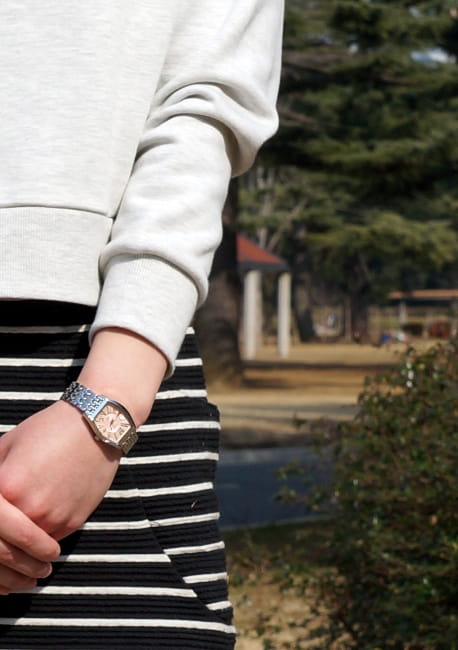 Циферблат дополнен лаконичным узором, часы отлично смотрятся в дополнении к повседневному образу. Циферблат защищен минеральным стекломМинеральное стеклоМинеральное стекло представляет собой искусственно выращенный минерал кварца. Такое стекло отличается особой устойчивостью к повреждениям и царапинам. Уступает по некоторым качествам сапфировому стеклу.. Полезными опциями являются отображение даты и дня недели, люминесцентная подсветкаЛюминесцентное покрытиеПозволяет считывать показания времени в темноте. Производители наносят на стрелки, часовые индексы, безель или поверхность циферблата светонакопительный состав, дающий холодное свечение.. Японский кварцевый механизм обеспечивает высокую точность хода +/- 20 сек/мес. Модель сделана из нержавеющей стали. Браслет с раскладной застёжкойРаскладная застёжкаТакой тип застёжки используется только на браслетах из металла. Она никогда не раскрывается полностью, происходит разделение на 2 и более частей. Раскладывающая застёжка снизит вероятность потери часов к минимуму..