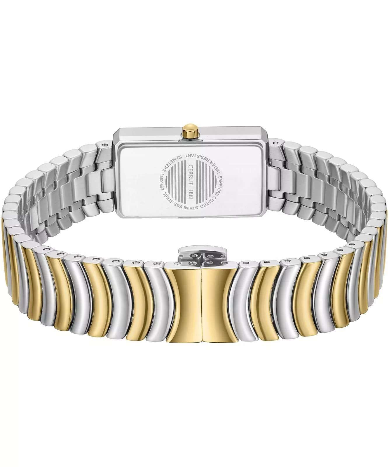 Женские кварцевые часы Cerruti 1881 Vallucciole CIWLG0086202 — миниатюрная элегантность с французским шармом. Корпус из нержавеющей стали 316L, размером 17 × 29 мм. Циферблат — белый перламутровый с точечными метками из кристаллов. Стекло — минеральноеМинеральное стеклоМинеральное стекло представляет собой искусственно выращенный минерал кварца. Такое стекло отличается особой устойчивостью к повреждениям и царапинам. Уступает по некоторым качествам сапфировому стеклу. с сапфировым покрытием. Браслет — стальной с частичным PVD-покрытиемPVDУльтратонкое покрытие наносится в технике вакуумного напыления, сочетает в себе нитрид титана особой прочности со слоем золота или оксида хрома. Несёт в себе декоративную или защитную функцию. на застёжке «бабочка» с кнопкамиЗастёжка "бабочка"Такой вид застёжки дополняется предохранителями, помогающими избежать случайного раскрытия браслета. Обладают изящным исполнением. . Водонепроницаемость 50 м. Идеальный выбор для тех, кто ценит французский дизайн и утончённую изящность.