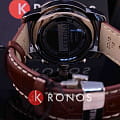Элегантный хронографХронографФункция позволяет измерять отрезки времени с особой точностью: часы, минуты, секунды. Верным признаком хронографа является наличие на циферблате 3 дополнительных окошек-счётчиков. с коричневым ремешком из натуральной кожи идеально завершит образ делового мужчины. Швейцарский кварцевый калибр ETA G10.211 измеряет время с высокой точностью хода. Стрелки имеют люминесцентное покрытиеЛюминесцентное покрытиеПозволяет считывать показания времени в темноте. Производители наносят на стрелки, часовые индексы, безель или поверхность циферблата светонакопительный состав, дающий холодное свечение.. Функции: секундомер, EOLEOLПредставляет собой систему, уведомляющую владельца часов о необходимости замены элемента питания. За 2 недели до полного разряда батарейки секундная стрелка перестаёт ходить чётко и начинает перепрыгивать на 3-4 деления., дата, тахиметрТахиметрРазмеченная шкала, располагается на ободке или безеле часов. Тахиметр позволяет рассчитать скорость на определённом участке пути, расстояние измеряется в километрах или милях..