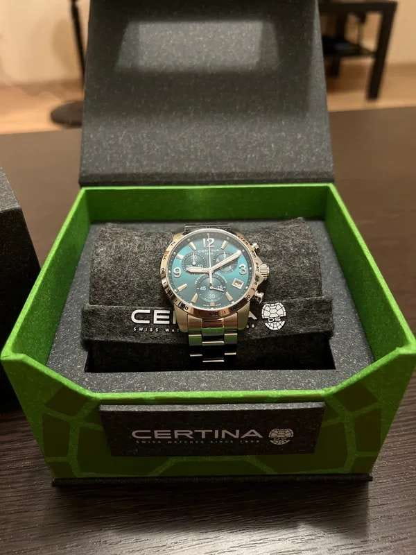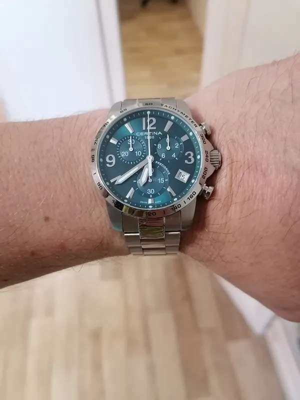 Certina DS не мои первые часы, но, безусловно, самые универсальные. Это идеальный вариант «одни на все случаи жизни»: они одинаково хорошо сочетаются и со светлой, и с темной одеждой, подходят как для шорт с майкой, так и для джинсов с рубашкой. Цвет циферблата отдельный восторг, модель очень стильная и привлекает комплименты. Единственный нюанс: секундная стрелка хронографа стоит с небольшим отклонением от метки «12», что, впрочем, типично для бюджетного швейцарского сегмента.