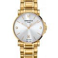 Мужские швейцарские часы Certina DS Caimano C017.410.33.037.00 из линейки DS Caimano отражают собой минималистичную классику, стильная модель универсальна и подходит под любую одежду. Наручные часы добавят элегантности в деловой или повседневный образ, лаконичность никогда не утратит актуальности. Аксессуар основан на концепции Двойной Защиты DS ConceptDS ConceptDouble Security Concept, обозначает двойную надёжность и безупречную точность часов Certina. Двойная система защиты подразумевает обеспечение максимальной устойчивости к ударам и высоких показателей водонепроницаемости., что позволяет ему стойко переносить любые условия. Швейцарский кварцевый калибр ETA F06.111 с высокой точностью хода. Надёжный корпус из стали 316L с противокоррозионными свойствами и PVD-покрытиемPVDУльтратонкое покрытие наносится в технике вакуумного напыления, сочетает в себе нитрид титана особой прочности со слоем золота или оксида хрома. Несёт в себе декоративную или защитную функцию.. Стекло из сапфира не допускает появления царапин. Стрелки с люминесцентным покрытиемЛюминесцентное покрытиеПозволяет считывать показания времени в темноте. Производители наносят на стрелки, часовые индексы, безель или поверхность циферблата светонакопительный состав, дающий холодное свечение.. Водозащита 100 метров. Апертура даты, индикатор EOLEOLПредставляет собой систему, уведомляющую владельца часов о необходимости замены элемента питания. За 2 недели до полного разряда батарейки секундная стрелка перестаёт ходить чётко и начинает перепрыгивать на 3-4 деления.. Диаметр корпуса: 38 мм. Производство и сборка: Швейцария.