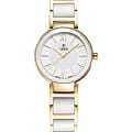 Часы Cover Essential CO2042.03 представляют собой идеальное сочетание классического дизайна и современных технологий, созданных для тех, кто ценит безупречный стиль и качество. Корпус часов изготовлен из высококачественной нержавеющей стали с полированной отделкой и PVD-покрытиемPVDУльтратонкое покрытие наносится в технике вакуумного напыления, сочетает в себе нитрид титана особой прочности со слоем золота или оксида хрома. Несёт в себе декоративную или защитную функцию. золотистого цвета, которая придает модели элегантный внешний вид и обеспечивает длительный срок службы. Циферблат выполнен в белом цвете с римскими цифрами и тонкими минутными метками, а стрелки оснащены люминесцентным покрытиемЛюминесцентное покрытиеПозволяет считывать показания времени в темноте. Производители наносят на стрелки, часовые индексы, безель или поверхность циферблата светонакопительный состав, дающий холодное свечение. для удобства использования даже в темноте. Стальной браслет с PVD-покрытиемPVDУльтратонкое покрытие наносится в технике вакуумного напыления, сочетает в себе нитрид титана особой прочности со слоем золота или оксида хрома. Несёт в себе декоративную или защитную функцию. и керамическими вставками на застёжке «бабочка»Застёжка "бабочка"Такой вид застёжки дополняется предохранителями, помогающими избежать случайного раскрытия браслета. Обладают изящным исполнением. .