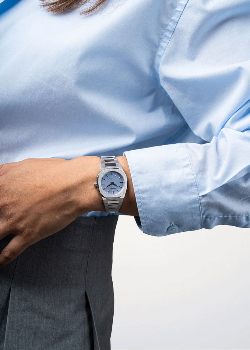 Женские кварцевые часы D1 Milano Ultra Thin UTBL37 — это стильное сочетание элегантности и современного дизайна. Изящный ультратонкий корпус выполнен из нержавеющей стали серебристого цвета, диаметром 30 мм, что придаст образу элегантности и надежности. Изысканный циферблат с метками в виде штрихов придает модели особый блеск. Циферблат защищен сапфировым стекломСапфировое стеклоПрочный и надёжный материал из кристалла сапфира синтетического происхождения, характеризующийся особой твёрдостью и устойчивостью к царапинам и повреждениям. с антибликовым покрытиемАнтибликовое покрытиеСлой оксида металла в 0,13-0,3 микрон, благодаря которому стекло часов не бликует и не отражает свет. Антибликовое покрытие уменьшает отражение света в 10 раз, обеспечивая отличную читаемость показателей циферблата., обеспечивающий устойчивость к царапинам. Часы оснащены надежным кварцевым механизмом. Стальной браслет на застёжке-бабочке с кнопкамиЗастёжка "бабочка"Такой вид застёжки дополняется предохранителями, помогающими избежать случайного раскрытия браслета. Обладают изящным исполнением. , гарантирует комфортное и безопасное ношение. Класс водозащиты: 50 метров позволит защитить корпус от случайных брызг или капель дождя. Отличный выбор для тех, кто ценит утонченность и качество.