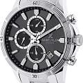 Мужские кварцевые часы Daniel Klein — это стильный и эффектный аксессуар. Корпус диаметром 43 мм выполнен изнержавеющей стали. БезельБезельВнешний ободок, закрепляющий стекло. В спортивных часах так называется поворотное кольцо с делениями на циферблате, выполняет роль таймера – замеряет отрезки времени на шкале. Неподвижный безель – элемент декора. Однонаправленно вращающийся безель на дайверских часах позволяет фиксировать моменты погружения и выныривания на поверхность. с минутными отметками. Циферблат чёрного цвета выполнен по технологии Sunray («солнечные лучи») и оформлен штрихами и стрелками. Присутствуют индикаторы 24-часового формата времени и второго часового пояса (GMTВторой часовой поясФункция, позволяющая отображать время двух часовых поясов одновременно.). Окошко даты расположено между 4 и 5 часами. Стрелки и метки с люминесцентным покрытиемЛюминесцентное покрытиеПозволяет считывать показания времени в темноте. Производители наносят на стрелки, часовые индексы, безель или поверхность циферблата светонакопительный состав, дающий холодное свечение., обеспечивающим хорошую читаемость в темноте. Циферблат защищён минеральным стекломМинеральное стеклоМинеральное стекло представляет собой искусственно выращенный минерал кварца. Такое стекло отличается особой устойчивостью к повреждениям и царапинам. Уступает по некоторым качествам сапфировому стеклу.. Механизм — японское кварцевое движение калибра TMI S.Epson VD37B14. Заводная головка с защитой повышает надёжность. Часы оснащены частично полированным и сатинированным стальным браслетом на раскладной застёжкеРаскладная застёжкаТакой тип застёжки используется только на браслетах из металла. Она никогда не раскрывается полностью, происходит разделение на 2 и более частей. Раскладывающая застёжка снизит вероятность потери часов к минимуму.. Водонепроницаемость 50 м позволяет использовать часы в повседневных условиях. Идеальный выбор для тех, кто ценит турецкое качество и универсальный дизайн.