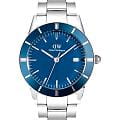 Daniel Wellington — мужские часы в современном спортивно-элегантном стиле. Круглый корпус диаметром 40 мм изготовлен из нержавеющей стали и дополнен синим безелемБезельВнешний ободок, закрепляющий стекло. В спортивных часах так называется поворотное кольцо с делениями на циферблате, выполняет роль таймера – замеряет отрезки времени на шкале. Неподвижный безель – элемент декора. Однонаправленно вращающийся безель на дайверских часах позволяет фиксировать моменты погружения и выныривания на поверхность. из анодированного алюминия, которое придаёт модели выразительный характер.