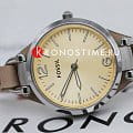 Стильные кварцевые женские наручные часы в полированном стальном корпусе на ремешке из натуральной кожи светло-коричневого цвета.