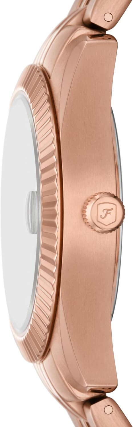 Часы Fossil ES5369 представляют собой изысканный аксессуар, который подчеркнет ваш стиль и индивидуальность. Эти женские наручные часы произведены в США и оснащены надежным кварцевым механизмом. Корпус выполнен из высококачественной стали с розово-золотистым IP-покрытиемIP-покрытиеМетод ионного напыления. Демонстрирует повышенную устойчивость к истиранию, окислению и химическим веществам. Под воздействием высокого давления и температуры около 1500°C молекулы металла надёжно соединяются с частицами корпуса часов., а рифленый безельБезельВнешний ободок, закрепляющий стекло. В спортивных часах так называется поворотное кольцо с делениями на циферблате, выполняет роль таймера – замеряет отрезки времени на шкале. Неподвижный безель – элемент декора. Однонаправленно вращающийся безель на дайверских часах позволяет фиксировать моменты погружения и выныривания на поверхность. с золотистым IP-покрытиемIP-покрытиеМетод ионного напыления. Демонстрирует повышенную устойчивость к истиранию, окислению и химическим веществам. Под воздействием высокого давления и температуры около 1500°C молекулы металла надёжно соединяются с частицами корпуса часов. придает часам элегантный и современный вид. Изумрудно-зеленый циферблат, изготовленный по технологии Sunray, украшен кристаллами, что придает ему особое сияние и элегантность. Метки в виде точек с кристаллами и римские цифры VI и XII создают утонченный и классический облик. В положении 3 часа находится окошко даты с увеличительным стеклом, что добавляет дополнительное удобство в повседневной жизни. Стрелки с люминесцентным покрытиемЛюминесцентное покрытиеПозволяет считывать показания времени в темноте. Производители наносят на стрелки, часовые индексы, безель или поверхность циферблата светонакопительный состав, дающий холодное свечение. позволяют легко считывать время даже в условиях низкой освещенности. Полированный стальной браслет с розово-золотистым IP-покрытиемIP-покрытиеМетод ионного напыления. Демонстрирует повышенную устойчивость к истиранию, окислению и химическим веществам. Под воздействием высокого давления и температуры около 1500°C молекулы металла надёжно соединяются с частицами корпуса часов. и раскладной застёжкойРаскладная застёжкаТакой тип застёжки используется только на браслетах из металла. Она никогда не раскрывается полностью, происходит разделение на 2 и более частей. Раскладывающая застёжка снизит вероятность потери часов к минимуму. обеспечивает комфортное ношение и надежную фиксацию на запястье. Водозащита 50WR позволяет не беспокоиться о случайных брызгах воды. Минеральное стеклоМинеральное стеклоМинеральное стекло представляет собой искусственно выращенный минерал кварца. Такое стекло отличается особой устойчивостью к повреждениям и царапинам. Уступает по некоторым качествам сапфировому стеклу. защищает циферблат от царапин и повреждений. С диаметром корпуса 32 мм и шириной браслета 16 мм, эти часы прекрасно подойдут для тех, кто ценит стиль и качество в каждой детали.