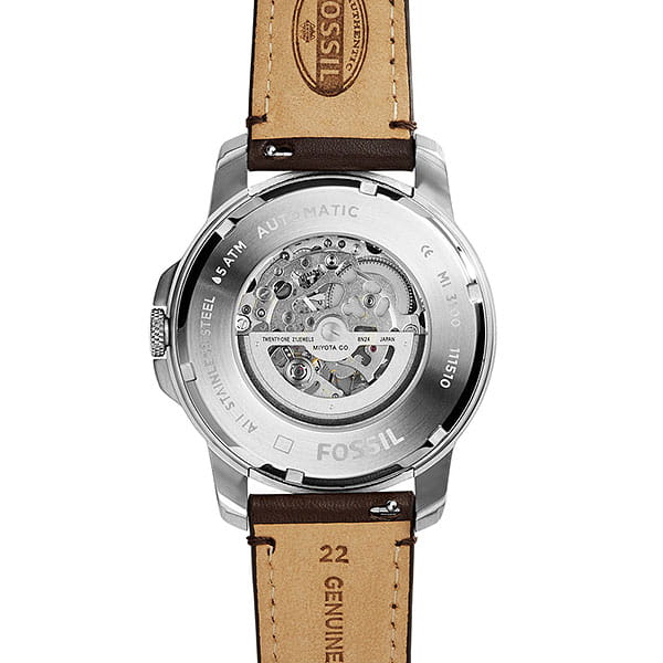 Мужские механические часы-скелетоны Fossil Grant ME3100 — это стильный аксессуар, сочетающий в себе элегантность и функциональность. Корпус выполнен из стального сплава 316L с высокими антикоррозийными свойствами, диаметром 45 мм, что придаёт ей устойчивость к царапинам и благородный внешний вид. Циферблат защищен минеральным стекломМинеральное стеклоМинеральное стекло представляет собой искусственно выращенный минерал кварца. Такое стекло отличается особой устойчивостью к повреждениям и царапинам. Уступает по некоторым качествам сапфировому стеклу., устойчивым к повреждениям. Стрелки имеют люминесцентное покрытиеЛюминесцентное покрытиеПозволяет считывать показания времени в темноте. Производители наносят на стрелки, часовые индексы, безель или поверхность циферблата светонакопительный состав, дающий холодное свечение., обеспечивающее отличную читаемость даже в условиях слабого освещения. Водонепроницаемость 50 метров позволит защитить корпус от случайных брызг или капель дождя. Браслет из кожи оснащён стандартной застёжкой, обеспечивающий комфорт и надёжную фиксацию на запястье. Эти часы станут универсальным аксессуаром для тех, кто ценит сочетание стиля, функциональности и надёжности — идеальный выбор для повседневной носки и активного образа жизни.