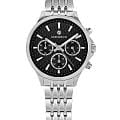 Женские кварцевые часы Greenwich — это сочетание элегантности и функциональности. Корпус диаметром 35 мм выполнен из нержавеющей стали. Циферблат чёрного цвета оформлен с эффектом гильоше в виде волнообразных линий, придающим ему объём и глубину. На циферблате расположены субциферблаты хронографа (секундомер на 60 секунд и 30 минут) и индикатор 24-часового формата. Окошко даты находится в положении 3 часов. Все индикаторы выделены рамками с зеркальной полировкой. Стрелки и метки с люминесцентным покрытиемЛюминесцентное покрытиеПозволяет считывать показания времени в темноте. Производители наносят на стрелки, часовые индексы, безель или поверхность циферблата светонакопительный состав, дающий холодное свечение., обеспечивающим хорошую читаемость в темноте. Циферблат защищён минеральным стекломМинеральное стеклоМинеральное стекло представляет собой искусственно выращенный минерал кварца. Такое стекло отличается особой устойчивостью к повреждениям и царапинам. Уступает по некоторым качествам сапфировому стеклу.. Механизм — кварцевый калибр Miyota с функцией хронографа. Часы оснащены стальным браслетом с комбинированной полировкой (матовые и зеркальные звенья) и удобной раскладной застёжкойРаскладная застёжкаТакой тип застёжки используется только на браслетах из металла. Она никогда не раскрывается полностью, происходит разделение на 2 и более частей. Раскладывающая застёжка снизит вероятность потери часов к минимуму.. Водонепроницаемость 100 м позволяет использовать часы для плавания и повседневного ношения. Гарантия — 24 месяца. Идеальный выбор для тех, кто ценит стиль, точность и надёжность.