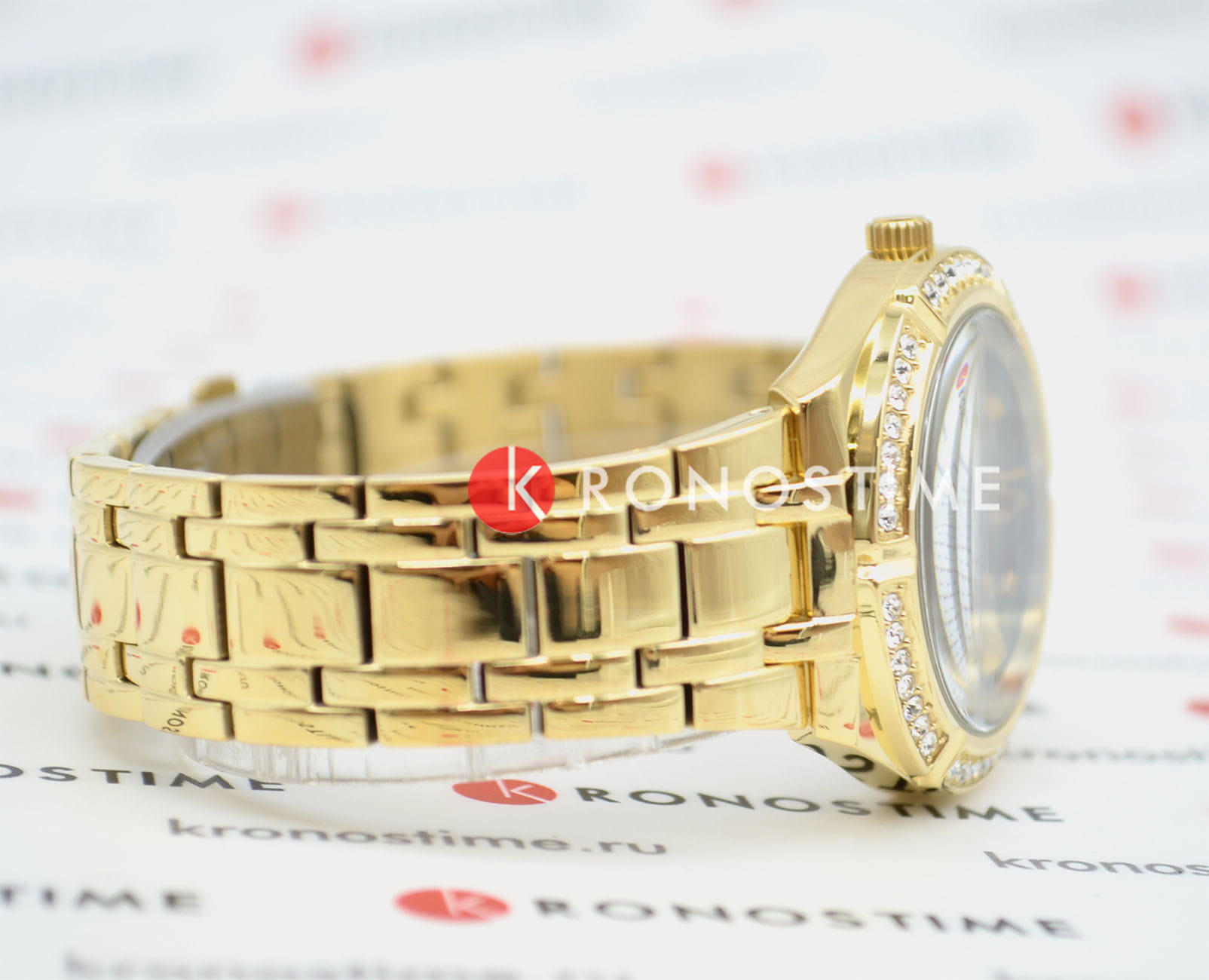 Стальной корпус круглой формы. Отсчет данных ведут три элегантные стрелки. Прочный браслет с раскладной застёжкойРаскладная застёжкаТакой тип застёжки используется только на браслетах из металла. Она никогда не раскрывается полностью, происходит разделение на 2 и более частей. Раскладывающая застёжка снизит вероятность потери часов к минимуму. будет надежно сидеть на запястье. Элегантный безельБезельВнешний ободок, закрепляющий стекло. В спортивных часах так называется поворотное кольцо с делениями на циферблате, выполняет роль таймера – замеряет отрезки времени на шкале. Неподвижный безель – элемент декора. Однонаправленно вращающийся безель на дайверских часах позволяет фиксировать моменты погружения и выныривания на поверхность. с ослепительными кристаллами. Вставлено минеральное стеклоМинеральное стеклоМинеральное стекло представляет собой искусственно выращенный минерал кварца. Такое стекло отличается особой устойчивостью к повреждениям и царапинам. Уступает по некоторым качествам сапфировому стеклу. с закалкой. Кварцевый механизм.
