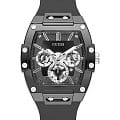 Женские наручные часы Guess Trend GW0203G3 С минеральным стекломМинеральное стеклоМинеральное стекло представляет собой искусственно выращенный минерал кварца. Такое стекло отличается особой устойчивостью к повреждениям и царапинам. Уступает по некоторым качествам сапфировому стеклу.. Кварцевый механизм с высокой точностью. Класс водозащиты: 50 метров, позволит защитить корпус от случайных брызг или капель дождя. Корпус часов изготовлен из пластика. Скелетонизированные. 12-ти и 24-х часовой формат времени. Метки в виде штрихов. Число и день недели отображаются на отдельных циферблатах.