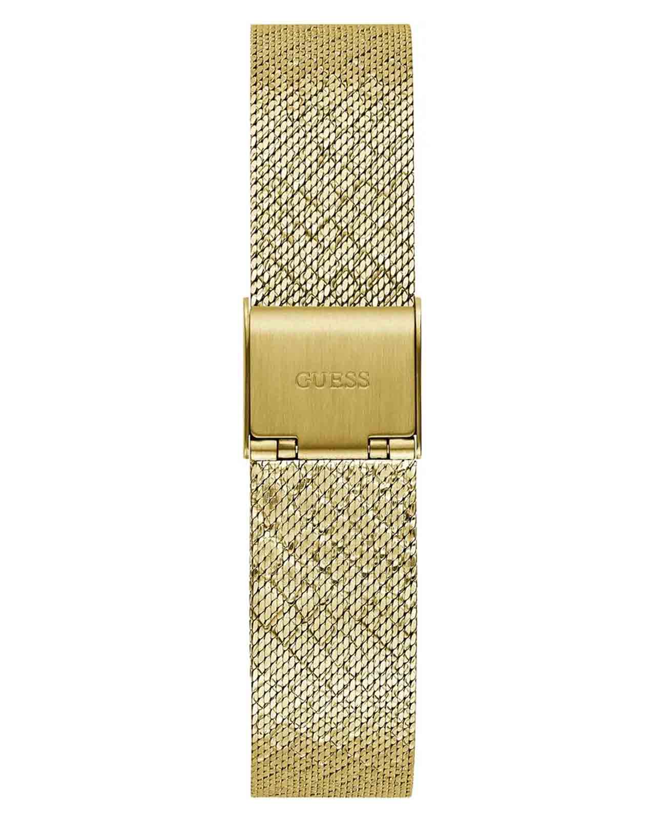 Женские наручные часы с минеральным стекломМинеральное стеклоМинеральное стекло представляет собой искусственно выращенный минерал кварца. Такое стекло отличается особой устойчивостью к повреждениям и царапинам. Уступает по некоторым качествам сапфировому стеклу. Guess Trend GW0748L2, кварцевый механизм с высокой точностью. Корпус часов изготовлен из стали с IP-покрытиемIP-покрытиеМетод ионного напыления. Демонстрирует повышенную устойчивость к истиранию, окислению и химическим веществам. Под воздействием высокого давления и температуры около 1500°C молекулы металла надёжно соединяются с частицами корпуса часов.. БезельБезельВнешний ободок, закрепляющий стекло. В спортивных часах так называется поворотное кольцо с делениями на циферблате, выполняет роль таймера – замеряет отрезки времени на шкале. Неподвижный безель – элемент декора. Однонаправленно вращающийся безель на дайверских часах позволяет фиксировать моменты погружения и выныривания на поверхность. с IP-покрытиемIP-покрытиеМетод ионного напыления. Демонстрирует повышенную устойчивость к истиранию, окислению и химическим веществам. Под воздействием высокого давления и температуры около 1500°C молекулы металла надёжно соединяются с частицами корпуса часов. и циферблат украшены кристаллами. Стрелки с люминесцентным покрытиемЛюминесцентное покрытиеПозволяет считывать показания времени в темноте. Производители наносят на стрелки, часовые индексы, безель или поверхность циферблата светонакопительный состав, дающий холодное свечение.. Класс водозащиты: 30 метров, позволит защитить корпус от случайных брызг или капель дождя. Стальной браслет миланского плетения с IP-покрытиемIP-покрытиеМетод ионного напыления. Демонстрирует повышенную устойчивость к истиранию, окислению и химическим веществам. Под воздействием высокого давления и температуры около 1500°C молекулы металла надёжно соединяются с частицами корпуса часов. на раскладном замкеРаскладной замокДанный вариант застежки используется только на часах с металлическим браслетом. Отличительная особенность такого крепления в том, что длина браслета становится универсальной и вы можете самостоятельно отрегулировать нужный вам размер – застежка просто двигается по браслету часов..