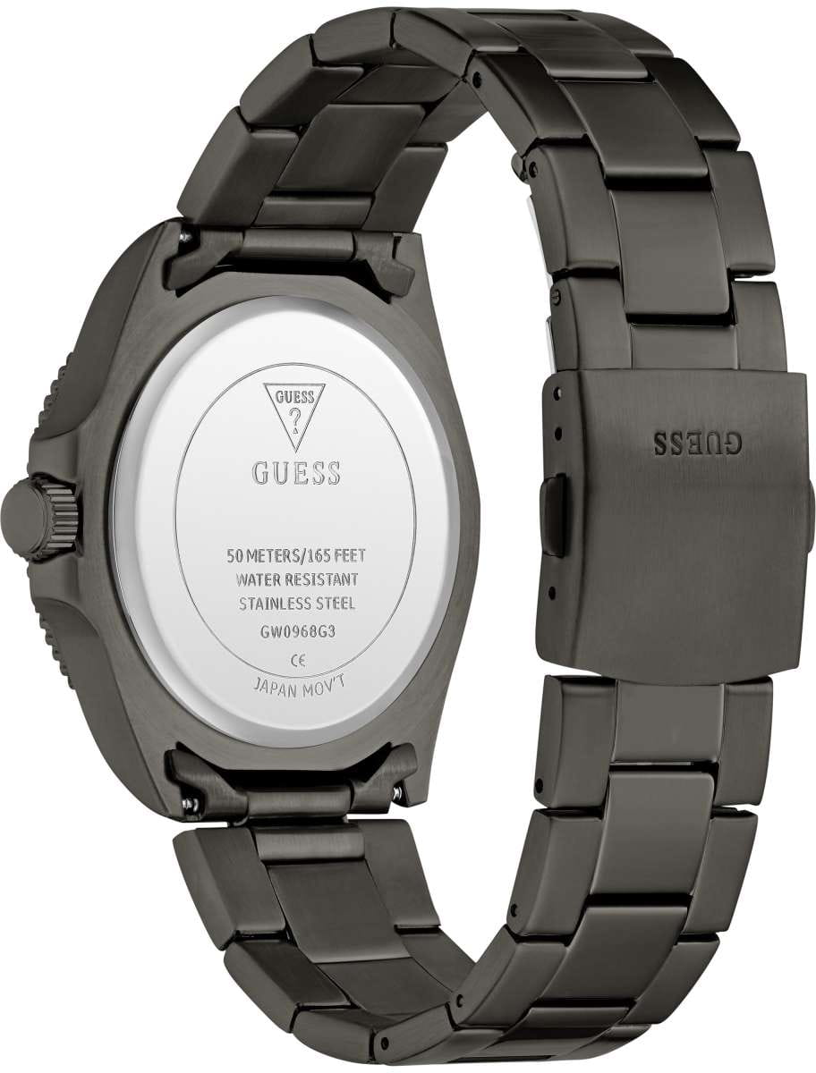 Часы Guess Sport Cliff GW0968G3 — это изысканный аксессуар, который добавит вашему современному образу нотку гламура и элегантности. Часы оснащены надежным кварцевым механизмом, который обеспечивает точность и долговечность. Круглый стальной корпус с IP-покрытиемIP-покрытиеМетод ионного напыления. Демонстрирует повышенную устойчивость к истиранию, окислению и химическим веществам. Под воздействием высокого давления и температуры около 1500°C молекулы металла надёжно соединяются с частицами корпуса часов. диаметром 41 мм и с поворотным безелемБезельВнешний ободок, закрепляющий стекло. В спортивных часах так называется поворотное кольцо с делениями на циферблате, выполняет роль таймера – замеряет отрезки времени на шкале. Неподвижный безель – элемент декора. Однонаправленно вращающийся безель на дайверских часах позволяет фиксировать моменты погружения и выныривания на поверхность. придает часам стильный и современный вид. Циферблат создает утонченное и изысканное впечатление. Люминесцентное покрытиеЛюминесцентное покрытиеПозволяет считывать показания времени в темноте. Производители наносят на стрелки, часовые индексы, безель или поверхность циферблата светонакопительный состав, дающий холодное свечение. на часах обеспечивает отличную видимость в темноте. Часы оснащены рифленой заводной головкой для удобного управления.Стальной браслет с IP-покрытиемIP-покрытиеМетод ионного напыления. Демонстрирует повышенную устойчивость к истиранию, окислению и химическим веществам. Под воздействием высокого давления и температуры около 1500°C молекулы металла надёжно соединяются с частицами корпуса часов. на раскладной застёжкеРаскладная застёжкаТакой тип застёжки используется только на браслетах из металла. Она никогда не раскрывается полностью, происходит разделение на 2 и более частей. Раскладывающая застёжка снизит вероятность потери часов к минимуму. добавляет модели элегантности и удобства, подчеркивая вашу индивидуальность и стиль. Водозащита 50WR позволит мыть руки или гулять под дождем, не опасаясь того, что в корпус попадет вода, а минеральное стеклоМинеральное стеклоМинеральное стекло представляет собой искусственно выращенный минерал кварца. Такое стекло отличается особой устойчивостью к повреждениям и царапинам. Уступает по некоторым качествам сапфировому стеклу. защищает циферблат от царапин. Эта модель станет идеальным аксессуаром для ежедневного использования и особых мероприятий, подчеркивая вашу индивидуальность и стиль.