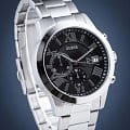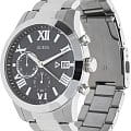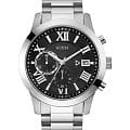 Мужские наручные часы-хронографХронографФункция позволяет измерять отрезки времени с особой точностью: часы, минуты, секунды. Верным признаком хронографа является наличие на циферблате 3 дополнительных окошек-счётчиков. с секундомеромСекундомерСекундоме́р — прибор, способный измерять интервалы времени с точностью до долей секунды. Guess Atlas W0668G3, кварцевый механизм с высокой точностью. Класс водозащиты: 50 метров, позволит защитить корпус от случайных брызг или капель дождя. Корпус часов изготовлен из стали. Стальной браслет на раскладной застёжкеРаскладная застёжкаТакой тип застёжки используется только на браслетах из металла. Она никогда не раскрывается полностью, происходит разделение на 2 и более частей. Раскладывающая застёжка снизит вероятность потери часов к минимуму.. Стрелки с люминесцентным покрытиемЛюминесцентное покрытиеПозволяет считывать показания времени в темноте. Производители наносят на стрелки, часовые индексы, безель или поверхность циферблата светонакопительный состав, дающий холодное свечение.. Окошко даты находится в положении 3 часа.