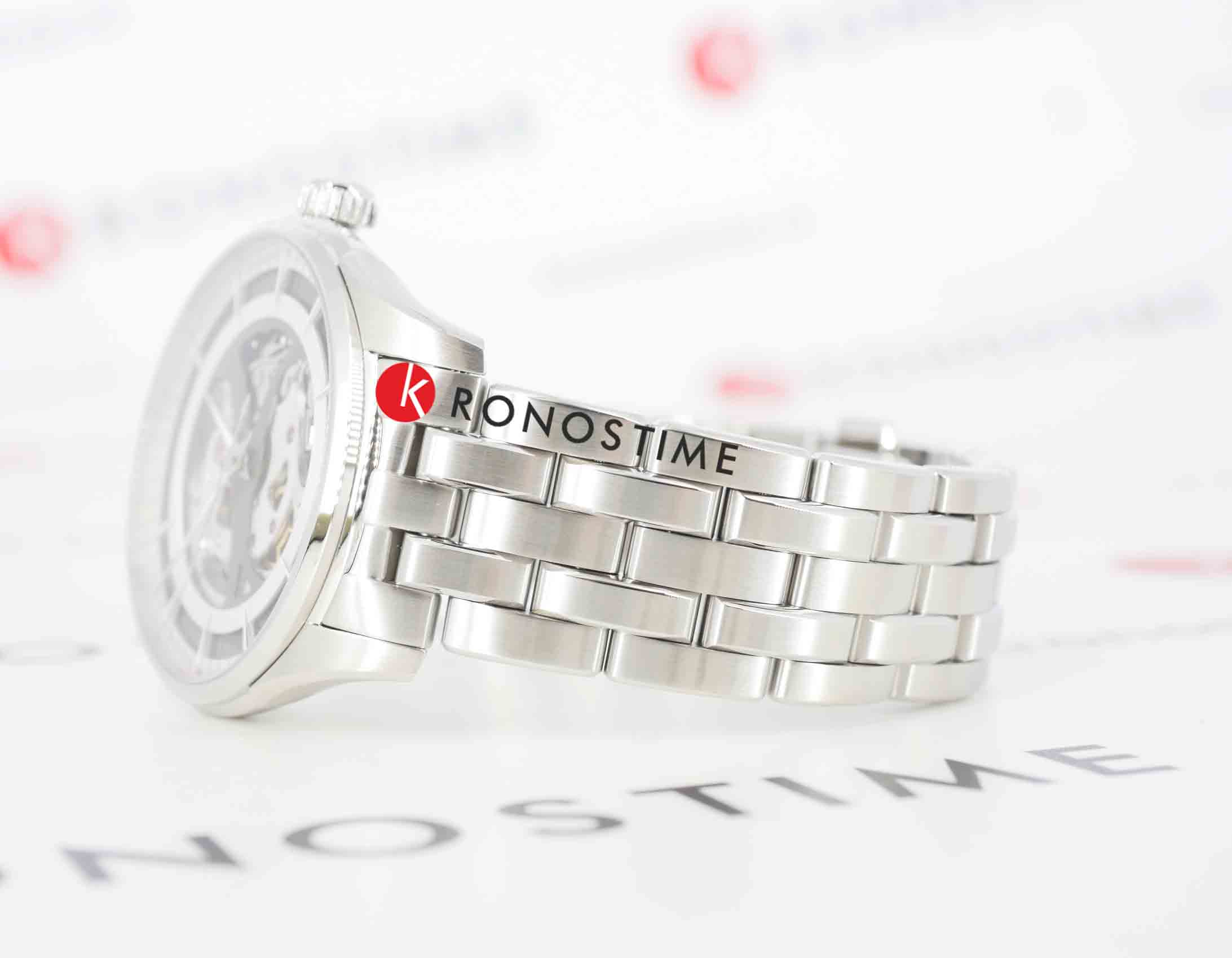 Мужские механические швейцарские часы-скелетоны Hamilton Jazzmaster Viewmatic Skeleton Gent Auto H42555151. Корпус и браслет часов изготовлены из нержавеющей стали. Стальной браслет на застёжке-бабочке с кнопкамиЗастёжка "бабочка"Такой вид застёжки дополняется предохранителями, помогающими избежать случайного раскрытия браслета. Обладают изящным исполнением. . Сапфировое стеклоСапфировое стеклоПрочный и надёжный материал из кристалла сапфира синтетического происхождения, характеризующийся особой твёрдостью и устойчивостью к царапинам и повреждениям. устойчивое к мелким механическим повреждениям. Класс водозащиты: 50 метров, позволит защитить корпус от случайных брызг или капель дождя. Стрелки и метки с люминесцентным покрытиемЛюминесцентное покрытиеПозволяет считывать показания времени в темноте. Производители наносят на стрелки, часовые индексы, безель или поверхность циферблата светонакопительный состав, дающий холодное свечение..