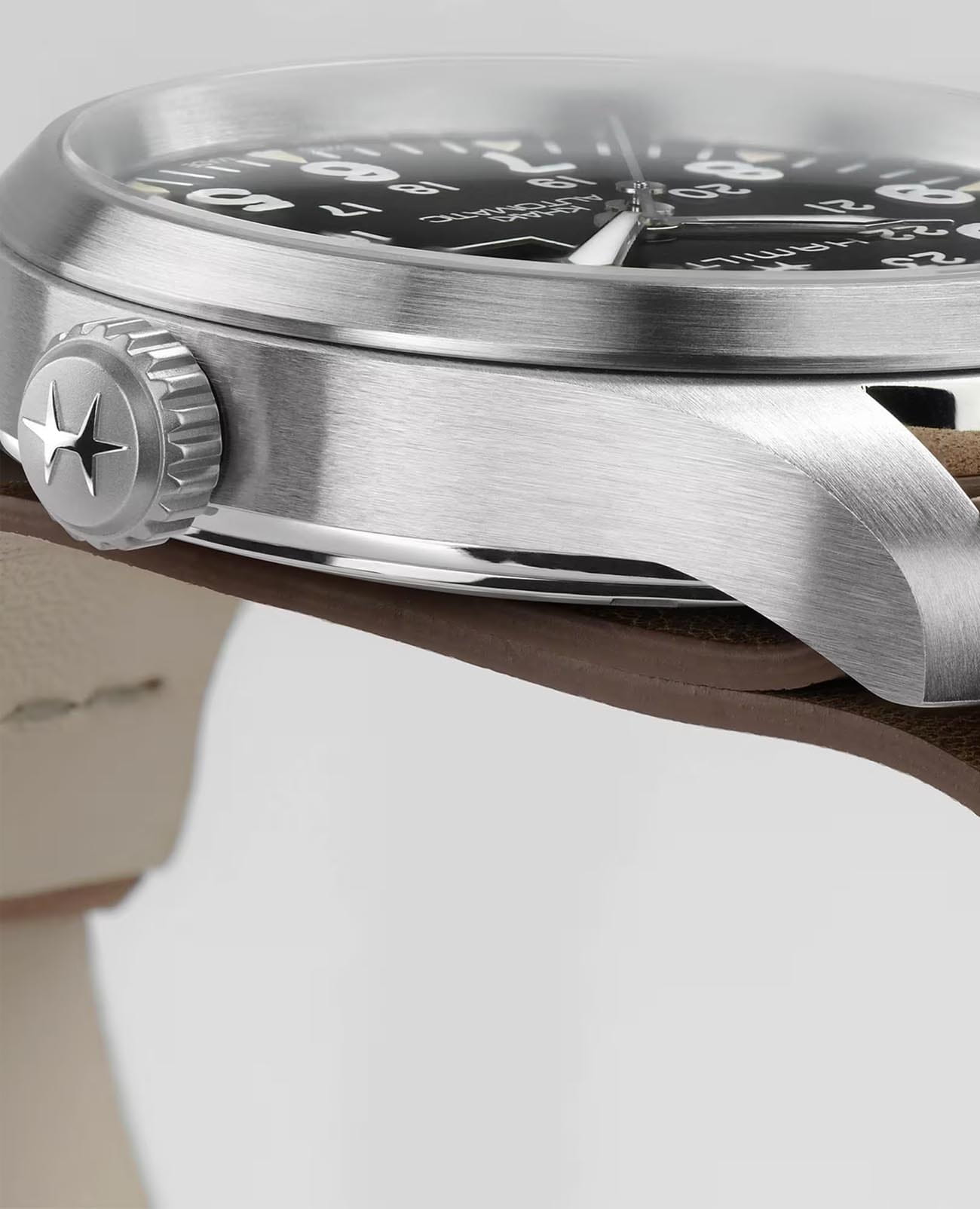Мужские механические швейцарские часы с автоподзаводом Hamilton Khaki Field Day Date Auto H70535531. Корпус часов изготовлен из нержавеющей стали. Кожаный ремешок на стандартной застёжке. Сапфировое стеклоСапфировое стеклоПрочный и надёжный материал из кристалла сапфира синтетического происхождения, характеризующийся особой твёрдостью и устойчивостью к царапинам и повреждениям. устойчивое к мелким механическим повреждениям. Стрелки и метки с люминесцентным покрытиемЛюминесцентное покрытиеПозволяет считывать показания времени в темноте. Производители наносят на стрелки, часовые индексы, безель или поверхность циферблата светонакопительный состав, дающий холодное свечение.. Окошки дня недели и даты находятся в положении 3 часа. Класс водозащиты: 100 метров, позволит плавать, нырять и заниматься другими водными видами спорта.