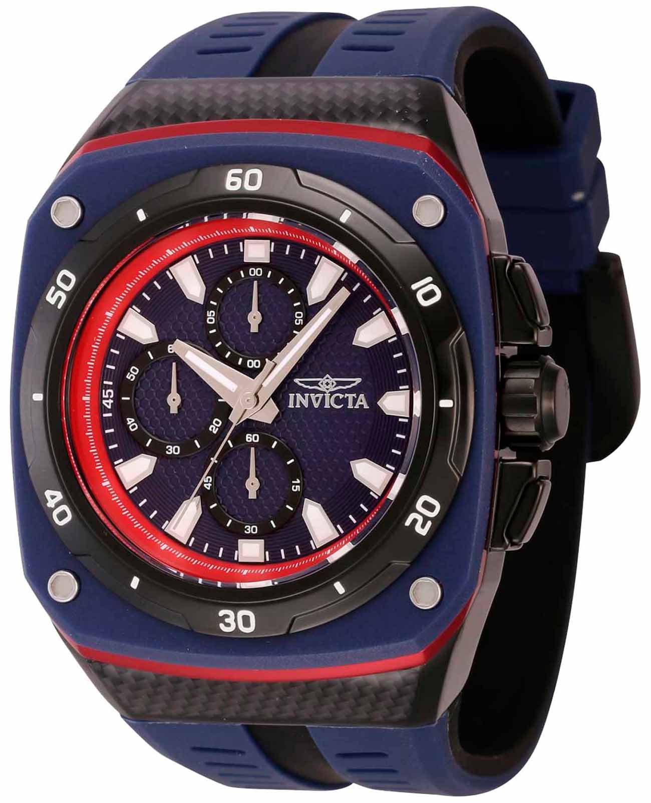 Мужские наручные часы-хронографХронографФункция позволяет измерять отрезки времени с особой точностью: часы, минуты, секунды. Верным признаком хронографа является наличие на циферблате 3 дополнительных окошек-счётчиков. Invicta IN46108 из коллекции Speedway сочетают в себе спортивный дизайн и надежность современных технологий. Модель обладает круглым корпусом диаметром 46 мм, изготовленным из стали с IP-покрытиемIP-покрытиеМетод ионного напыления. Демонстрирует повышенную устойчивость к истиранию, окислению и химическим веществам. Под воздействием высокого давления и температуры около 1500°C молекулы металла надёжно соединяются с частицами корпуса часов., что обеспечивает привлекательный внешний вид и устойчивость к коррозии . Ремешок выполнен из силикона шириной 3 см, гарантируя комфортное ношение . Циферблат с метками в виде штрихов оснащен люминесцентным покрытиемЛюминесцентное покрытиеПозволяет считывать показания времени в темноте. Производители наносят на стрелки, часовые индексы, безель или поверхность циферблата светонакопительный состав, дающий холодное свечение., что обеспечивает хорошую видимость в темноте . Для защиты используется минеральное стеклоМинеральное стеклоМинеральное стекло представляет собой искусственно выращенный минерал кварца. Такое стекло отличается особой устойчивостью к повреждениям и царапинам. Уступает по некоторым качествам сапфировому стеклу., обеспечивающее прочную защиту от царапин . Часы работают на кварцевом механизме, что гарантирует точное время без необходимости подзаводки. Модель также является хронографомХронографФункция позволяет измерять отрезки времени с особой точностью: часы, минуты, секунды. Верным признаком хронографа является наличие на циферблате 3 дополнительных окошек-счётчиков., оснащенным функцией секундомераСекундомерСекундоме́р — прибор, способный измерять интервалы времени с точностью до долей секунды., делая ее идеальной для активного образа жизни . Водонепроницаемость часов достигает 50 метров (5 атмосфер), что позволяет использовать их во время мытья рук или дождя, однако не рекомендуется для плавания или дайвинга .