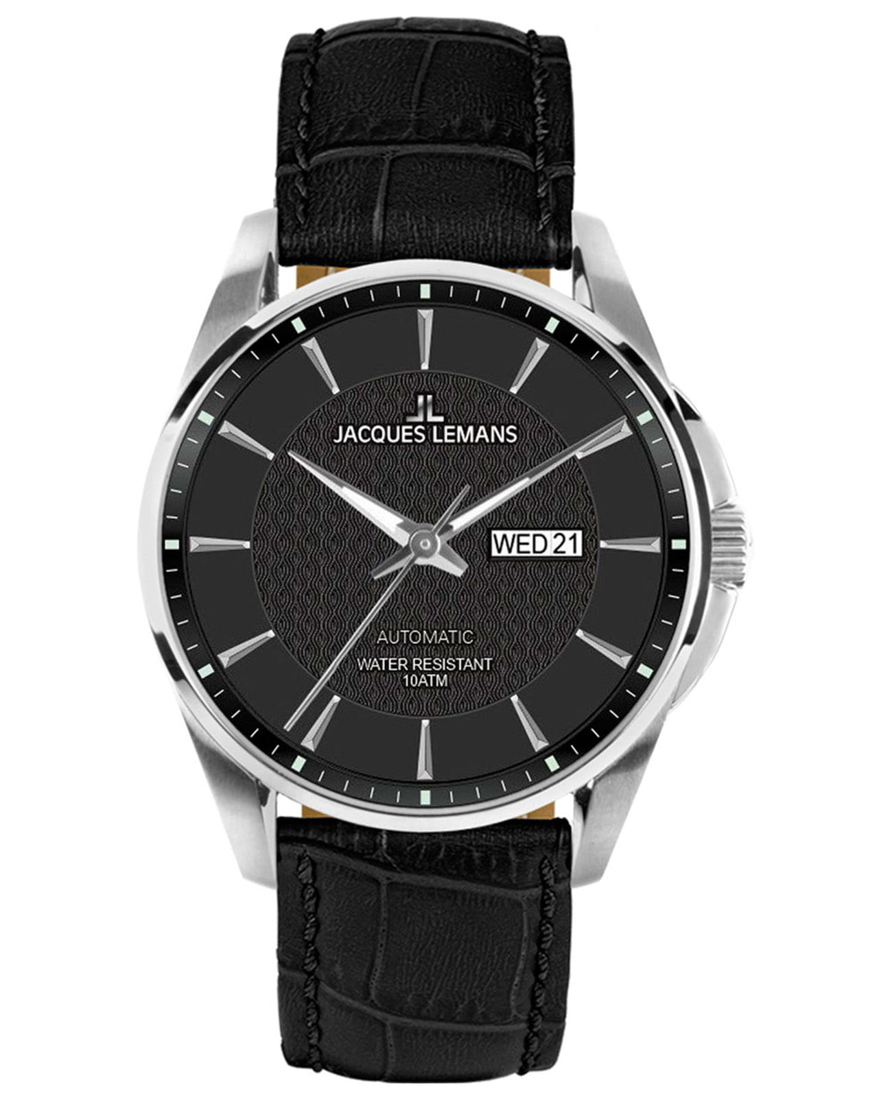 Мужские часы Jacques Lemans Classic 1-2154A. Кварцевый механизм с высокой точностью. Минеральное стеклоМинеральное стеклоМинеральное стекло представляет собой искусственно выращенный минерал кварца. Такое стекло отличается особой устойчивостью к повреждениям и царапинам. Уступает по некоторым качествам сапфировому стеклу. устойчивое к появлению царапин, обладающее высокой прозрачностью. Класс водозащиты: 100 метров, позволит плавать, нырять и заниматься другими водными видами спорта. Корпус часов изготовлен из нержавеющей стали. На циферблате окошко даты находится в положении 3 часа. Стрелки с люминесцентным покрытиемЛюминесцентное покрытиеПозволяет считывать показания времени в темноте. Производители наносят на стрелки, часовые индексы, безель или поверхность циферблата светонакопительный состав, дающий холодное свечение.. Ремешок из натуральной кожи на стандартной застежке.