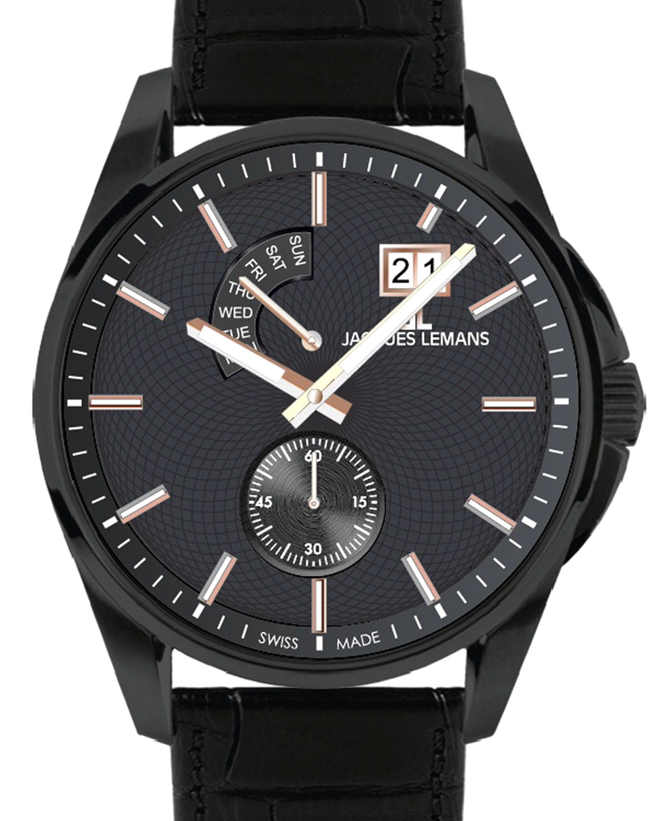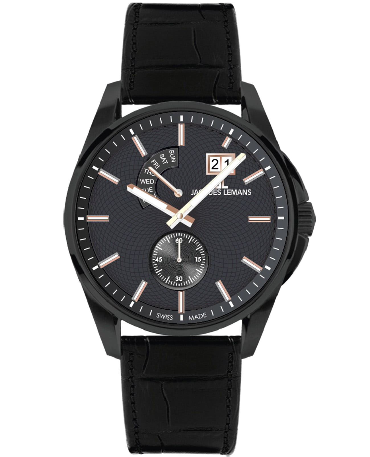 Мужские часы Jacques Lemans 1-2199H – лаконичная красота и изысканная элегантность. Оригинальная модель с классическим оформлением станет превосходным завершением образа, наделив его индивидуальным характером. Корпус выполнен из нержавеющей стали с PVD-покрытиемPVDУльтратонкое покрытие наносится в технике вакуумного напыления, сочетает в себе нитрид титана особой прочности со слоем золота или оксида хрома. Несёт в себе декоративную или защитную функцию. черного цвета, диаметром 44 мм, что обеспечивает долговечность и утончённый внешний вид. Минеральное стеклоМинеральное стеклоМинеральное стекло представляет собой искусственно выращенный минерал кварца. Такое стекло отличается особой устойчивостью к повреждениям и царапинам. Уступает по некоторым качествам сапфировому стеклу. с сапфировым напылением защищает циферблат от царапин. Кожаный ремешок на стандартной застёжке обеспечивает комфортное ношение. Водозащита 100 метров позволит плавать, нырять и заниматься другими водными видами спорта. Стрелки и метки с люминесцентным покрытиемЛюминесцентное покрытиеПозволяет считывать показания времени в темноте. Производители наносят на стрелки, часовые индексы, безель или поверхность циферблата светонакопительный состав, дающий холодное свечение. позволяющие легко определять время даже в темноте. Окошко даты находится в положении 1 час, на 6 часов вынесена индикация секунд. Широкое окошко дня недели в положении 11-12 часов позволяет показывать название дня недели. Это аксессуар для мужчины, который ценит классический стиль и функциональность.