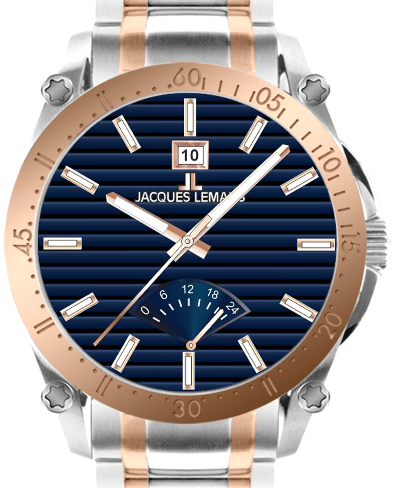 Мужские кварцевые часы Jacques Lemans 1-2202Q – лаконичная красота и изысканная элегантность. Оригинальная модель с классическим оформлением станет превосходным завершением образа, наделив его индивидуальным характером. Корпус выполнен из нержавеющей стали, диаметром 44 мм, что обеспечивает долговечность и утончённый внешний вид. Минеральное стеклоМинеральное стеклоМинеральное стекло представляет собой искусственно выращенный минерал кварца. Такое стекло отличается особой устойчивостью к повреждениям и царапинам. Уступает по некоторым качествам сапфировому стеклу. с сапфировым напылением защищает циферблат от царапин. Стальной браслет с частичным PVD-покрытиемPVDУльтратонкое покрытие наносится в технике вакуумного напыления, сочетает в себе нитрид титана особой прочности со слоем золота или оксида хрома. Несёт в себе декоративную или защитную функцию. на раскладной застёжкеРаскладная застёжкаТакой тип застёжки используется только на браслетах из металла. Она никогда не раскрывается полностью, происходит разделение на 2 и более частей. Раскладывающая застёжка снизит вероятность потери часов к минимуму. обеспечивает комфортное ношение. На неподвижный безельБезельВнешний ободок, закрепляющий стекло. В спортивных часах так называется поворотное кольцо с делениями на циферблате, выполняет роль таймера – замеряет отрезки времени на шкале. Неподвижный безель – элемент декора. Однонаправленно вращающийся безель на дайверских часах позволяет фиксировать моменты погружения и выныривания на поверхность. с PVD-покрытиемPVDУльтратонкое покрытие наносится в технике вакуумного напыления, сочетает в себе нитрид титана особой прочности со слоем золота или оксида хрома. Несёт в себе декоративную или защитную функцию. нанесена минутная шкала. Водозащита 100 метров позволит плавать, нырять и заниматься другими водными видами спорта. Стрелки и метки с люминесцентным покрытиемЛюминесцентное покрытиеПозволяет считывать показания времени в темноте. Производители наносят на стрелки, часовые индексы, безель или поверхность циферблата светонакопительный состав, дающий холодное свечение. позволяющие легко определять время даже в темноте. Окошко даты находится в положении 12 часов. Индикатор 24-х часов вынесен на отдельный циферблат. Рифленая заводная головка с защитой. Это аксессуар для мужчины, который ценит классический стиль и функциональность.