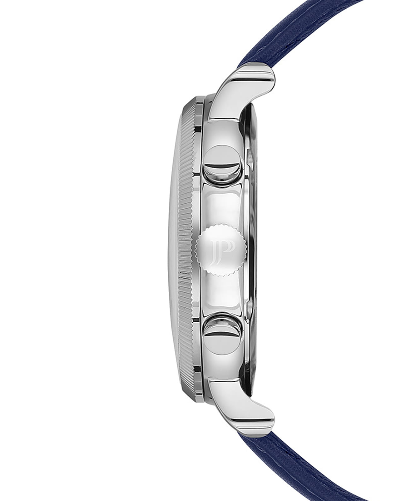 Швейцарские мужские часы-хронографХронографФункция позволяет измерять отрезки времени с особой точностью: часы, минуты, секунды. Верным признаком хронографа является наличие на циферблате 3 дополнительных окошек-счётчиков. с секундомеромСекундомерСекундоме́р — прибор, способный измерять интервалы времени с точностью до долей секунды. Jacques Philippe Vintage JPQGC191132, кварцевый механизм с высокой точностью. Сапфировое стеклоСапфировое стеклоПрочный и надёжный материал из кристалла сапфира синтетического происхождения, характеризующийся особой твёрдостью и устойчивостью к царапинам и повреждениям. устойчивое к появлению царапин, обладающее высокой прозрачностью. Корпус часов изготовлен из нержавеющей стали. На циферблате три дополнительных индикатора. Окошко даты находится между 4 и 5 часами. Класс водозащиты: 50 метров, позволит защитить корпус от случайных брызг или капель дождя. Кожаный ремешок на стандартной застёжке.