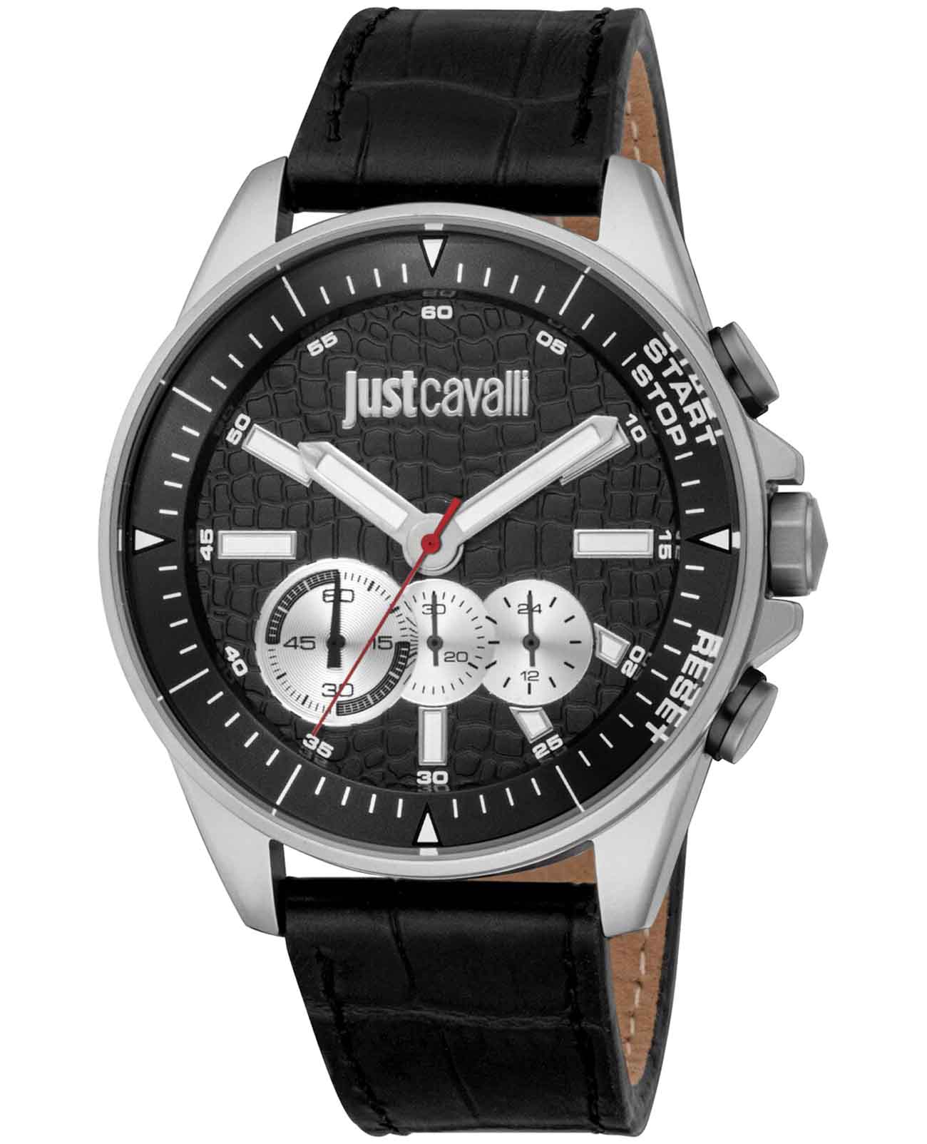 JUST CAVALLI JC1G348L0025 — стильные итальянские часы с функцией хронографаХронографФункция позволяет измерять отрезки времени с особой точностью: часы, минуты, секунды. Верным признаком хронографа является наличие на циферблате 3 дополнительных окошек-счётчиков., которые сочетают в себе элегантность и современный функционал. Круглый корпус диаметром 45 мм выполнен из нержавеющей стали, толщина корпуса составляет 11 мм, что придает модели выразительный внешний вид и надежную защиту от внешних воздействий. Часы оснащены кварцевым механизмом, также обладают функцией отображения даты, что делает их удобными для ежедневного использования. Минеральное стеклоМинеральное стеклоМинеральное стекло представляет собой искусственно выращенный минерал кварца. Такое стекло отличается особой устойчивостью к повреждениям и царапинам. Уступает по некоторым качествам сапфировому стеклу. защищает часы от царапин, а водозащита 100 метров идеально подходит для повседневного ношения. Стрелки с люминесцентным покрытиемЛюминесцентное покрытиеПозволяет считывать показания времени в темноте. Производители наносят на стрелки, часовые индексы, безель или поверхность циферблата светонакопительный состав, дающий холодное свечение.. Кожаный ремешок на стандартной застёжке обеспечивает комфортное ношение.